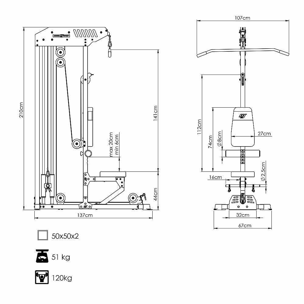 Spodná a horná sťahovacia kladka s sedadlom MARBO Sport MS-W101 2.0 je všestranné tréningové zariadenie navrhnuté s ohľadom na pohodlie a bezpečnosť užívateľa, ktoré je možné využiť mnohými spôsobmi pri silovom a všeobecnom rozvoji.