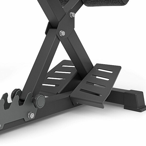 Polstrovanie je opatrené dvojitými švami pre maximálnu pevnosť. Koncovky stabilizátorov sú vyrobené zo špeciálnej zmesi gumy, ktorá zaisťuje ešte lepšiu stabilitu a ochranu podlahy ako u predchádzajúcej generácie lavíc. Zarážky sú opatrené pohodlnými valcami z EVA peny, robustné nášľapy zase uľahčujú zaujatie správnej pracovnej pozície. Hyperextenziu je možné zložiť na hrúbku 21 centimetrov.