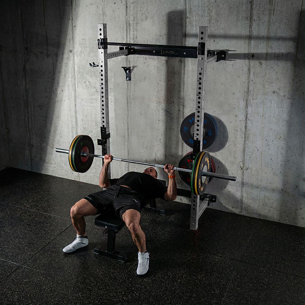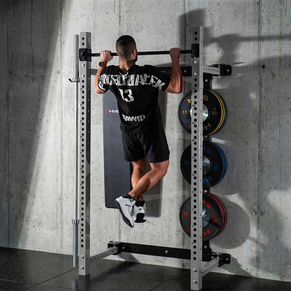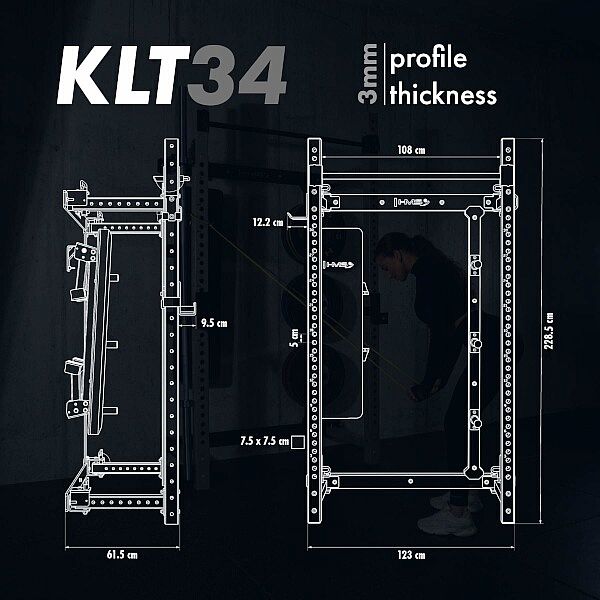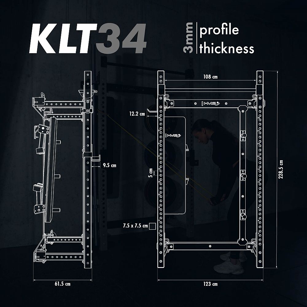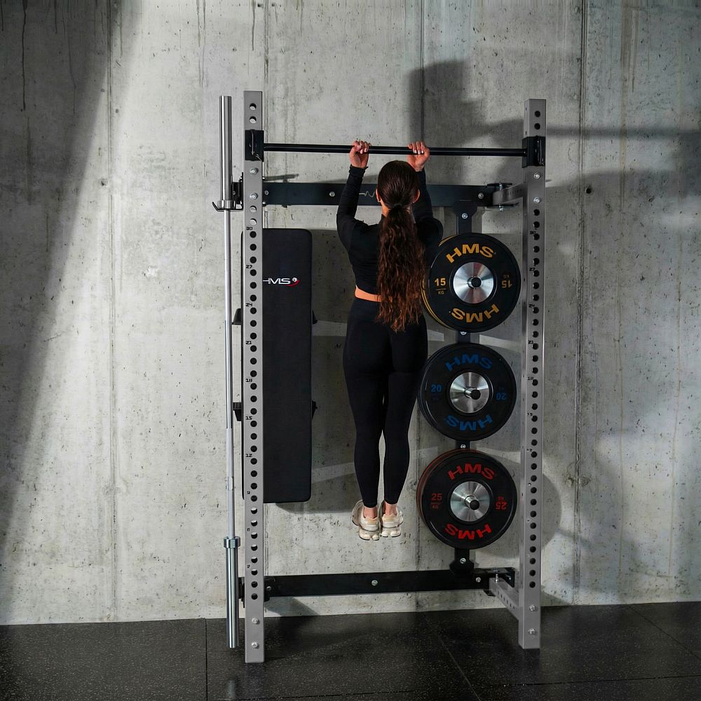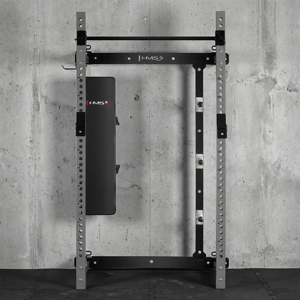 Power Rack KLT34 HMS Fitness je navrhnutý špeciálne pre domáce posilňovne, kde zohráva kľúčovú úlohu úspora priestoru, vysoká funkčnosť a bezpečnosť. Vďaka skladaniu rámov k sebe nevyžaduje vysoký strop, a je preto ideálny do bytov, pivníc i garáží.