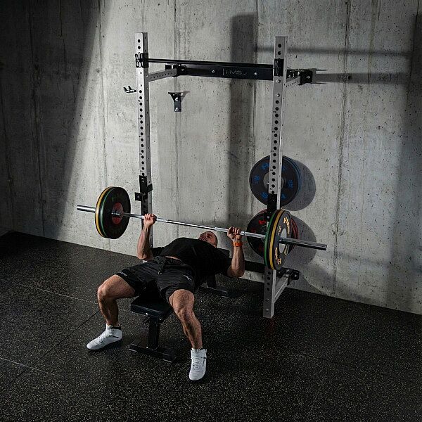 Robustná oceľová konštrukcia, vysoké nosnosti a skladacia tréningová lavica vytvárajú plnohodnotné stanovište pre silový tréning v domácich podmienkach.