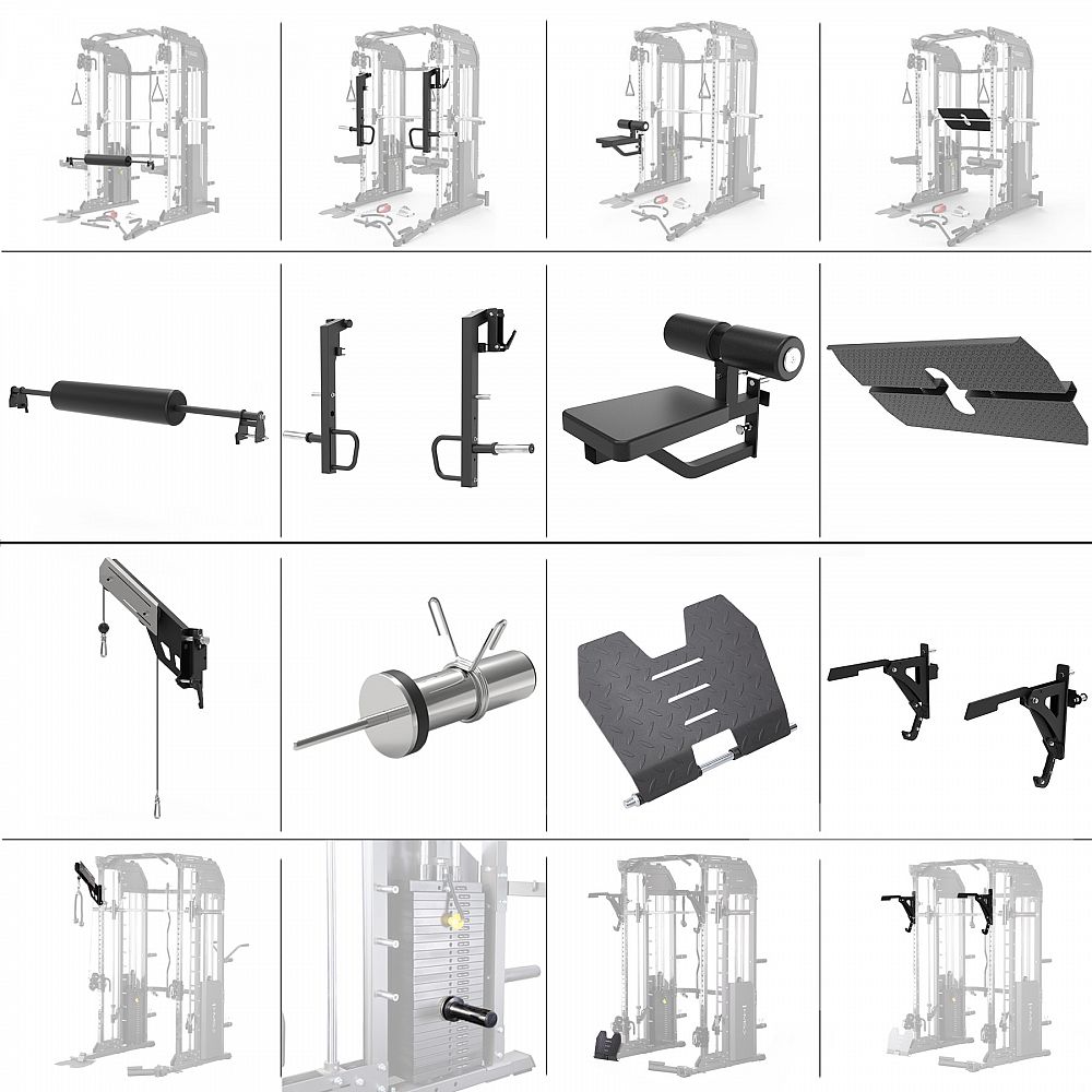 Súčasťou dodávky je široké príslušenstvo, pomocou ktorého je možné vykonávať desiatky rôznych cvikov: