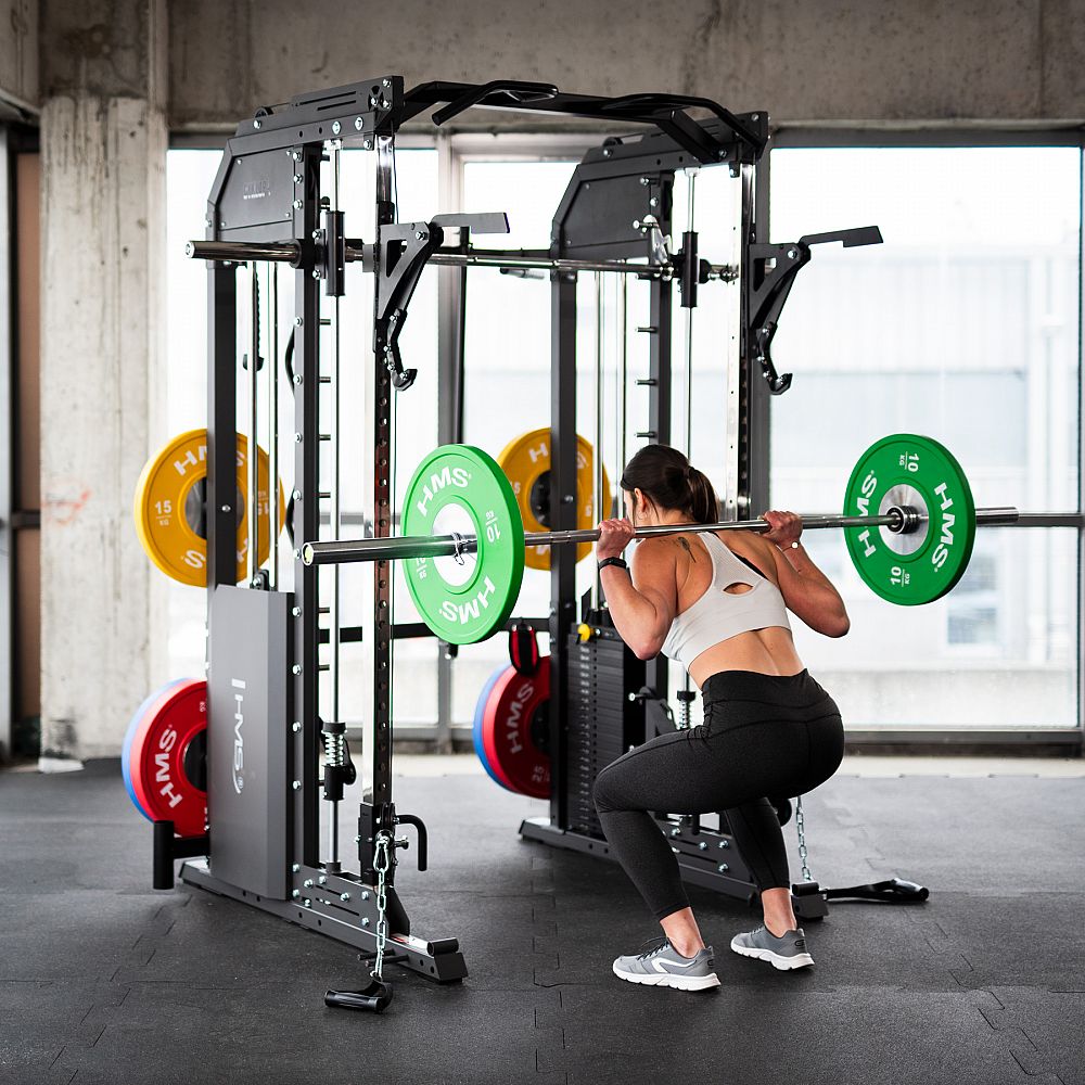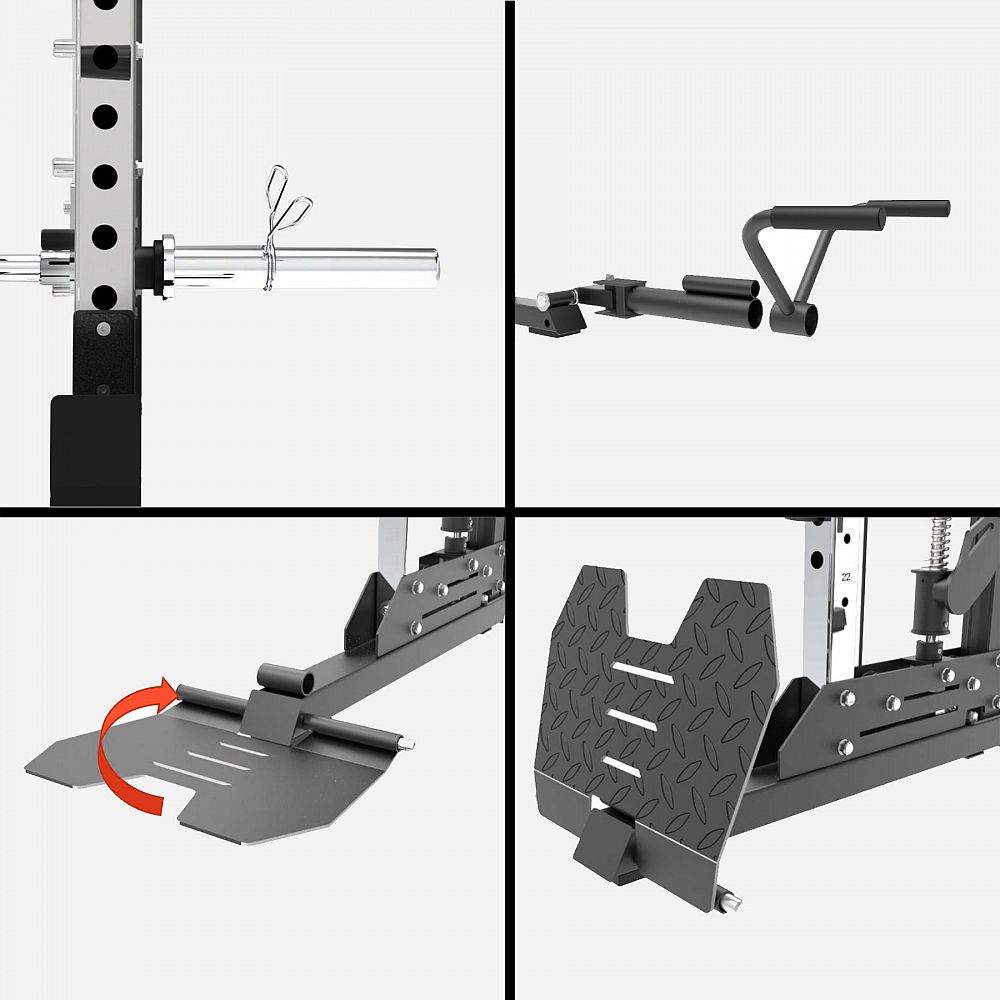 - Multipress - pohyblivá nakladacia os umiestnená na vodiacich tyčiach pre bezpečný tréning drepov, benchpressu a ďalších cvikov s obojručnou činkou či už s lavičkou alebo bez nej. Pohyblivé puzdrá sú opatrené lineárnymi ložiskami pre hladký chod. Výškovo nastaviteľné dorazy s robustnou pružinou nastaviteľné do 9 úrovní.