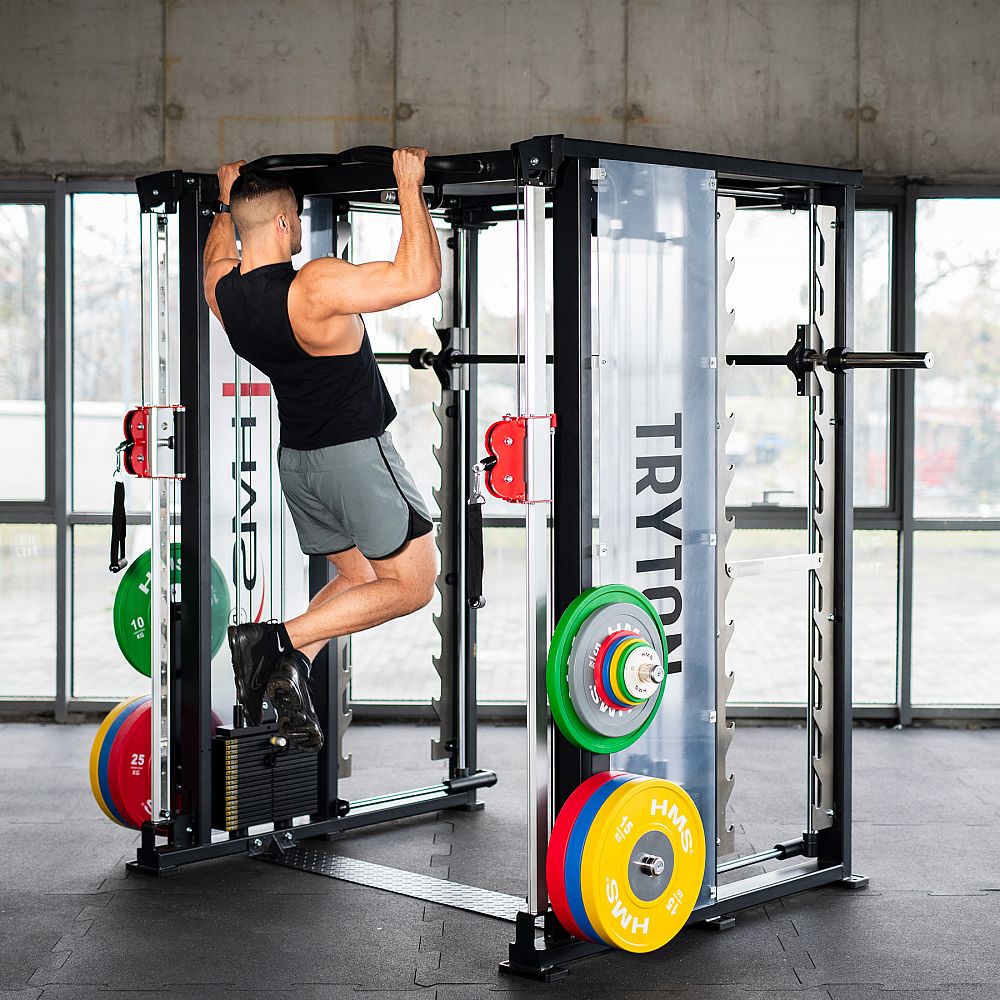 TRYTON je navyše vybavený hrazdou s rôznymi možnosťami úchopu pre všestranný tréning chrbta, ramien a brucha. Štyri odkladacie tŕne umožňujú pohodlné uloženie kotúčov a udržujú tréningový priestor prehľadný. Pohodlné používanie a praktické riešenia robia z tohto posilňovacieho stroja nepostrádateľný nástroj v každej profesionálnej a domácej posilňovni.