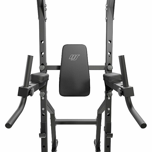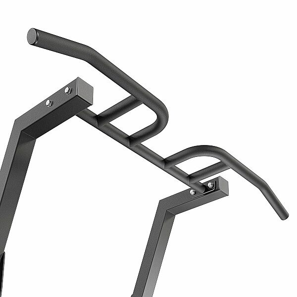 Rozvíjajte svoju silu a formujte svalstvo hornej polovice tela pomocou nastaviteľných madiel pre DIPy. Ergonomické madlá s protišmykovým povrchom zaručujú bezpečný úchop aj pri intenzívnom tréningu. Výšku madiel je možné pohodlne nastaviť do 2 polôh podľa výšky cvičenca - 123 a 132 cm od zeme.