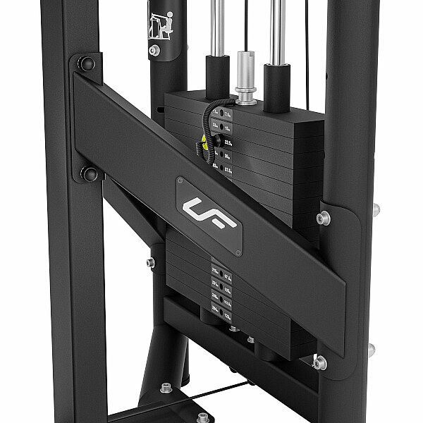 Sťahovanie hornej kladky UpForm UF-020 je profesionálna tréningová veža určená pre náročných užívateľov. Vďaka šikovnému dizajnu, veľkosti zásobníka a okamžitej zmene záťaže je veža ideálna pre silový a športový tréning. Konštrukciou je stanica určená na použitie v komerčných posilňovniach, fitnesscentrách alebo kluboch. Rám je vyrobený z oceľových profilov 100 x 60 x 3 milimetre a oceľových trubiek s profilom 60,3 x 3,2 mm a 76,1 x 3,2 milimetrov, ktoré zaručujú vysokú stabilitu konštrukcie a jej dlhú životnosť aj pri náročnom trénovaní s plne využívanou sadou závaží.