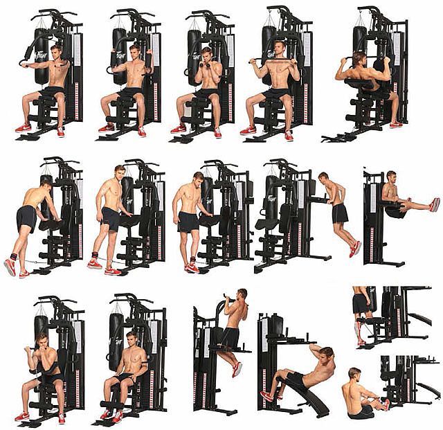 - prístroj dovoľuje vykonávanie niekoľkých cvičení, posilňujúci svaly brucha, nôh, hrudníka a chrbta, rúk a ramien
