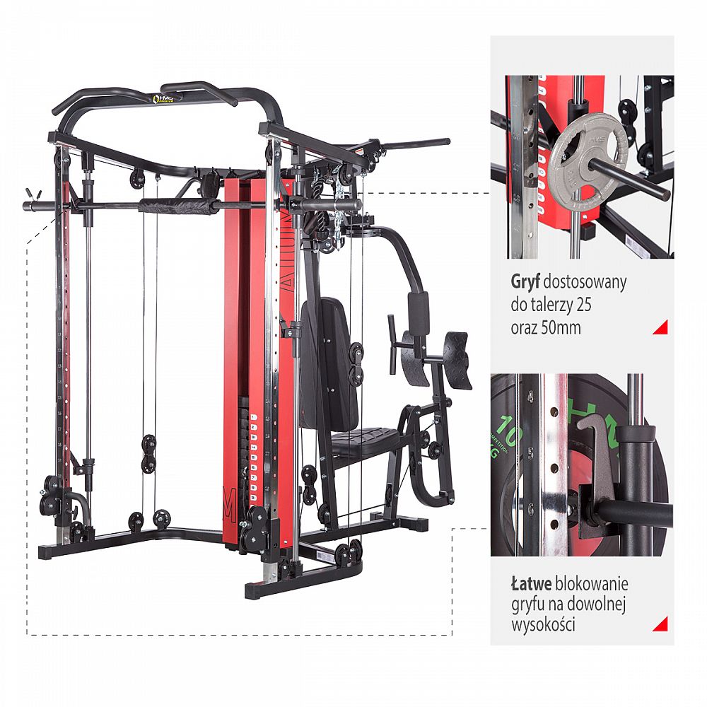 Stroj HMS Premium ATOM je kombináciou posilňovacej veže a multipressu. Táto kombinácia ponúka skvelé možnosti cvičenia a umožňuje vykonávať komplexný tréning celého tela.