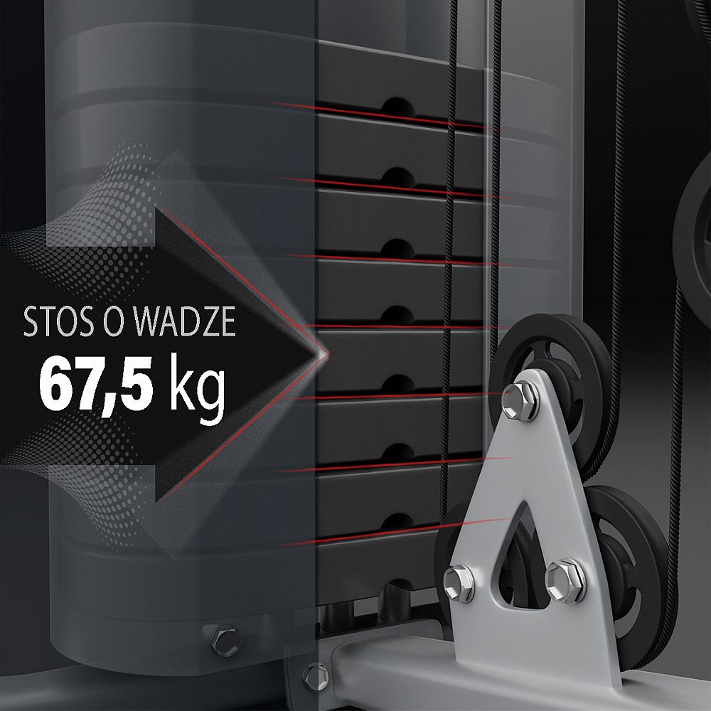 Posilňovacia veža Tytan 7 HMS je multifunkčný nástroj pre domáce cvičenie. Veža umožňuje bezpečné cvičenie rôznych svalových skupín ako v profesionálnom telocvični. Je ideálny pre ženy aj mužov, ktorí si chcú zlepšiť kondíciu, zlepšiť vzhľad postavy, zvýšiť a posilniť svalovú hmotu. Multifuknčná veža umožňuje rozvoj všetkých svalových skupín: prsných a chrbtových svalov, posturálne, predlaktia, ramená, biceps, triceps a taktiež umožňuje trénovať svaly nôh.