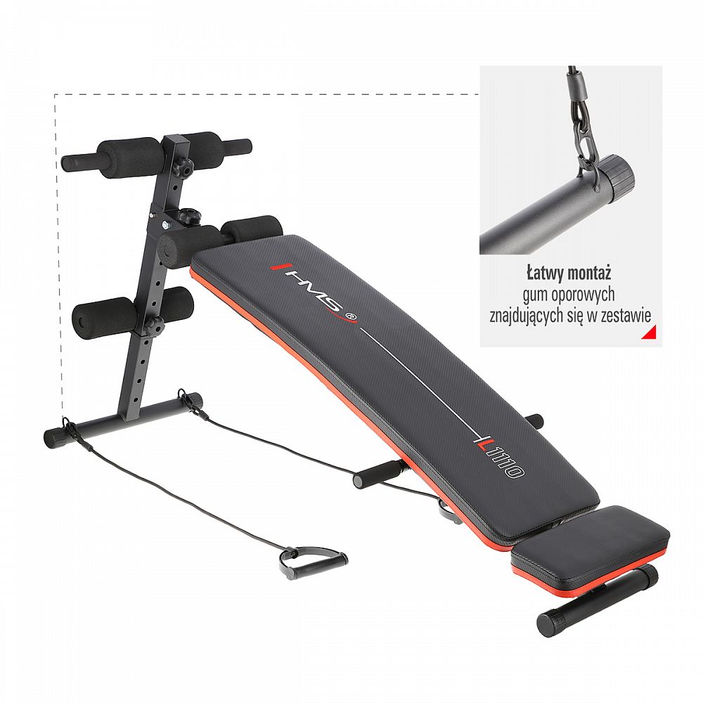 HMS L1110 je šikmá, polohovateľná lavica, ktorá je primárne určená na tréning sedov ľahov.