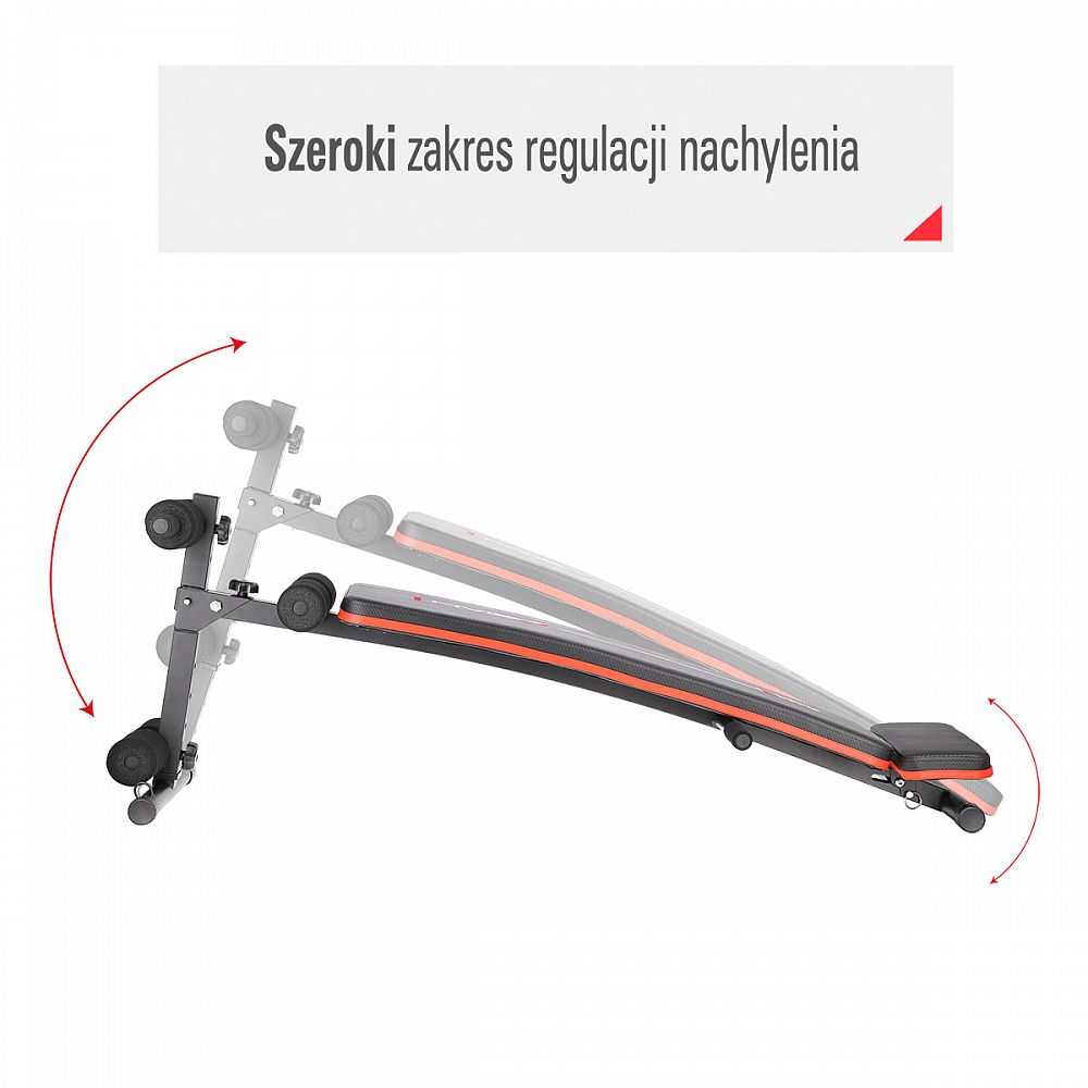 Lavica HMS L1110 je nielen stabilná, ale aj pohodlná. Mäkká pena na operadle a penové valce zaisťujú pohodlie po celú dobu tréningu. Čalúnenie s karbónovým vzorom je nielen štýlové, ale aj odolné proti potu a zabraňuje kĺzaniu tela počas cvičenia. Nastaviteľný sklon umožňuje ľahko upraviť obtiažnosť cvičenia podľa vašich potrieb. Čím vyššia je sklon, tým pokročilejšie je cvičenie.