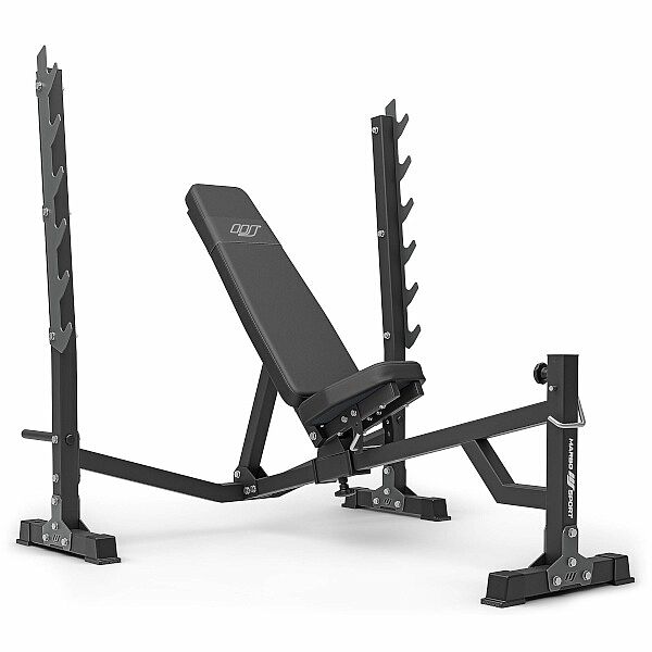 Variabilná, posilňovacia lavica MARBO Sport MS-L106 vo verzii 2.0 pre tréning s veľkou činkou. Rám je vyrobený na precíznych CNC strojoch z oceľových profilov o rozmere 50 x 50 x 2 milimetre, tento postup výroby zaručuje vysokú presnosť, stabilitu a nosnosť výslednej konštrukcie.