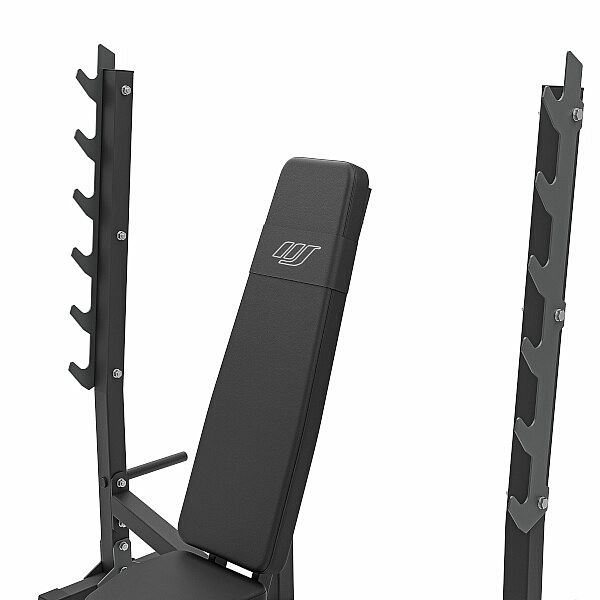 Stĺpiky po stranách lavice sú opatrené hákmi na odloženie činky. Celkom 6 polôh ponúka dostatočný rozsah pre ideálne uloženie činky na začiatok tréningu a zároveň sa spodné háky dajú použiť ako bezpečnostný prvok na odloženie činky, keď už nemáme dosť síl na vytáčanie váhy späť do východiskovej pozície.