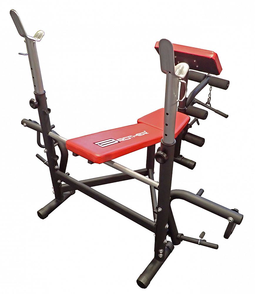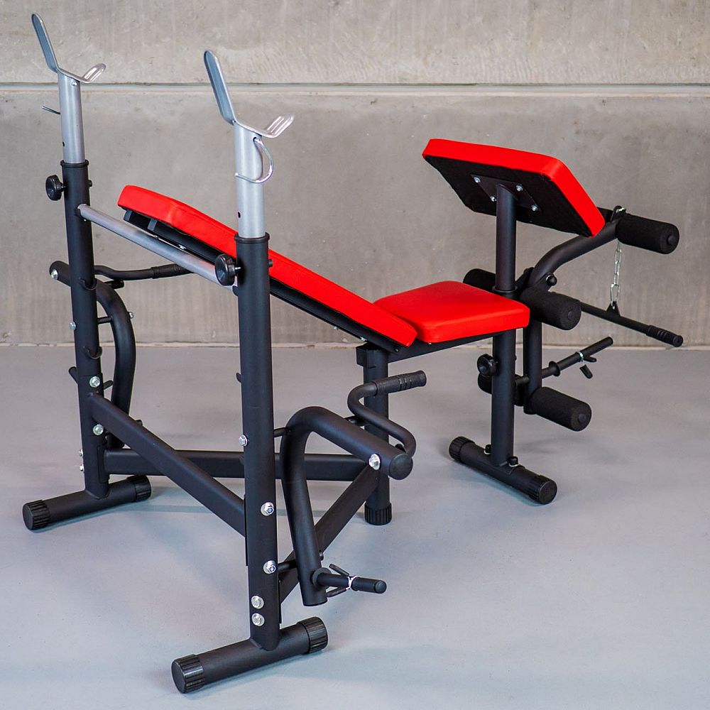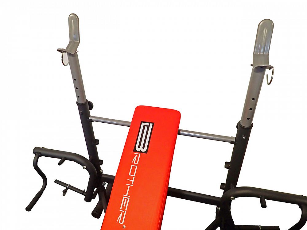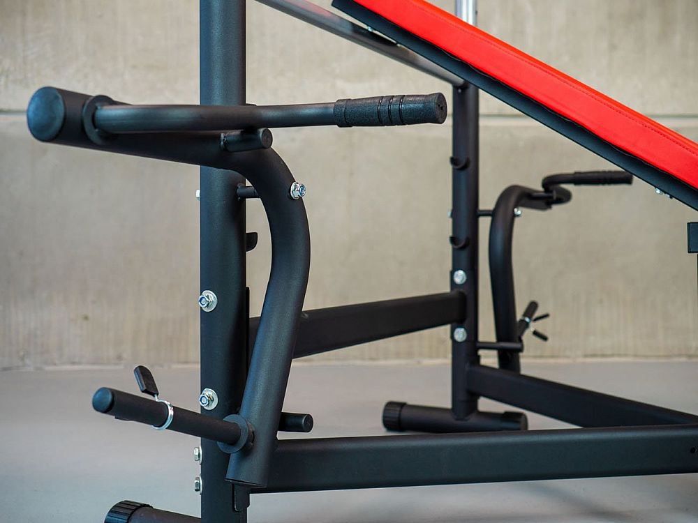 - Na stojanoch sú upevnené otočné kladky (tzv. motýlik), ktoré rozmanitosť možných cvikov na lavici ešte dopĺňajú.