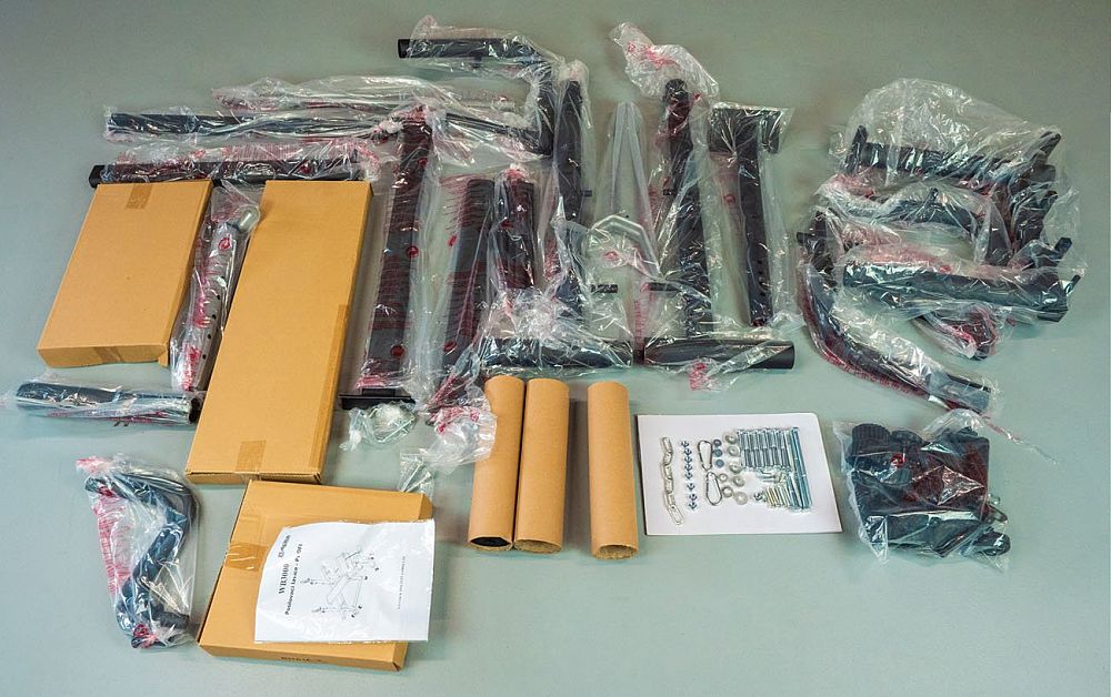 - Zostava sa skladá zvlášť z lavice a stojana, obe časti sú spojené do jedného celku.