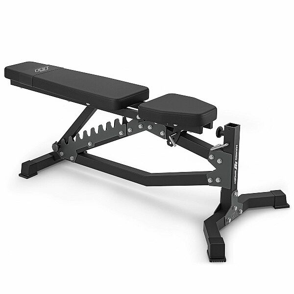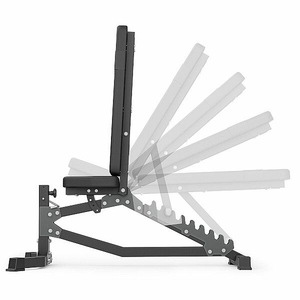 Variabilná, posilňovacia lavica MARBO Sport MS-L102 vo verzii 2.0 je dovedená takmer k dokonalosti. Rám je vyrobený na precíznych CNC strojoch z oceľových profilov o rozmere 50 x 50 x 2 milimetre, tento postup výroby zaručuje vysokú presnosť, stabilitu a nosnosť výslednej konštrukcie. Laserom vypaľované profily zarážok umožňujú naozaj precízne nastavenie chrbtovej opierky do 10-tich polôh, táto jemná regulácia umožňuje prispôsobenie posedu naozaj ktorémukoľvek cviku. Sedák je možné nastaviť do 3 polôh a jeho regulácia sa vykonáva pomocou čapu. Variabilita nastavenia je v rozsahu od takmer 90 stupňovej "stoličky" až po šikmú lavicu s uhlom -21 °. Lavicu MS-L102 2.0 je možné v kombinácii so stojanom pod veľkú činku použiť aj k silovému tréningu, nosnosť lavice je 300 kilogramov. Polstrovanie je opatrené dvojitými švami pre maximálnu pevnosť. V najnamáhanejšom mieste je chrbtová opierka opatrená druhou vrstvou kože s logom MARBO Sport. Koncovky stabilizátorov sú vyrobené zo špeciálnej zmesi gumy, ktorá zaisťuje ešte lepšiu stabilitu a ochranu podlahy ako u predchádzajúcej generácie lavíc.