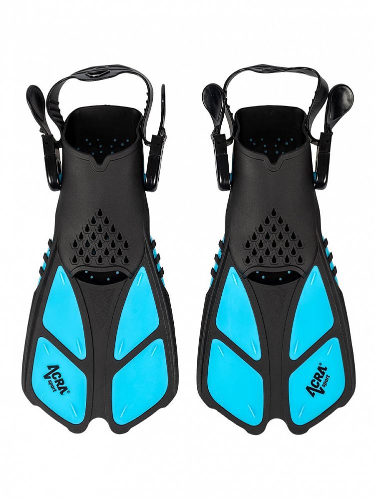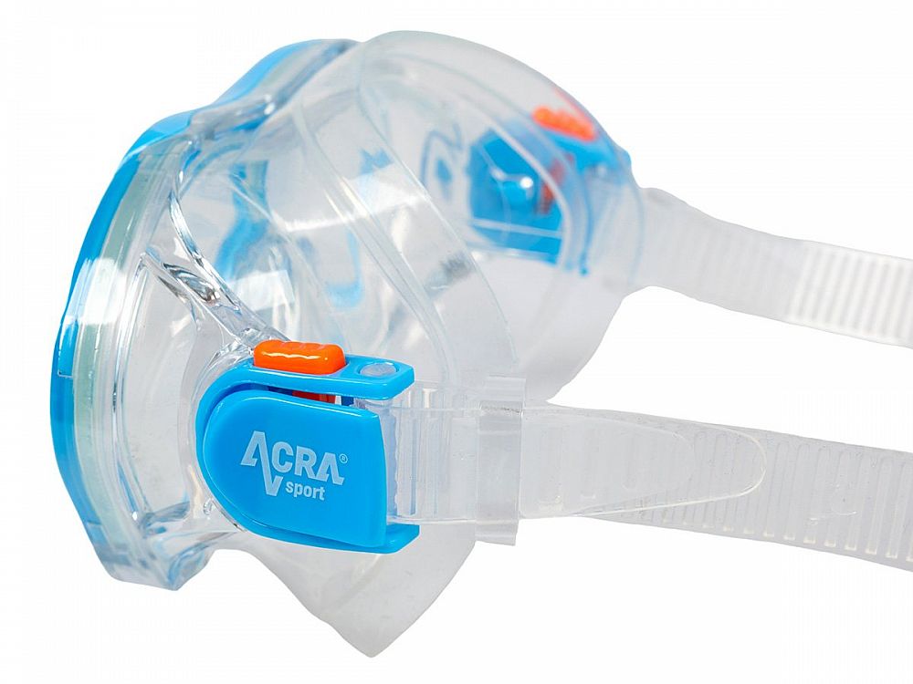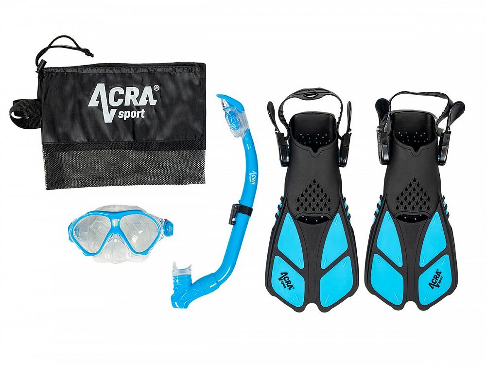 Detská sada na šnorchlovanie Acra šport obsahuje: nastaviteľné detské plutvy, suchý šnorchel, plaveckú masku.