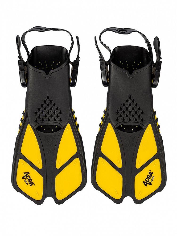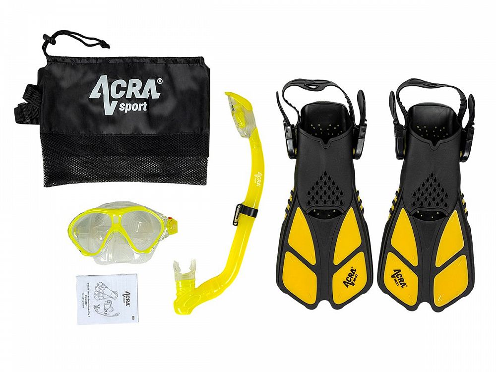 Detská sada na šnorchlovanie Acra šport obsahuje: nastaviteľné detské plutvy, suchý šnorchel, plaveckú masku.