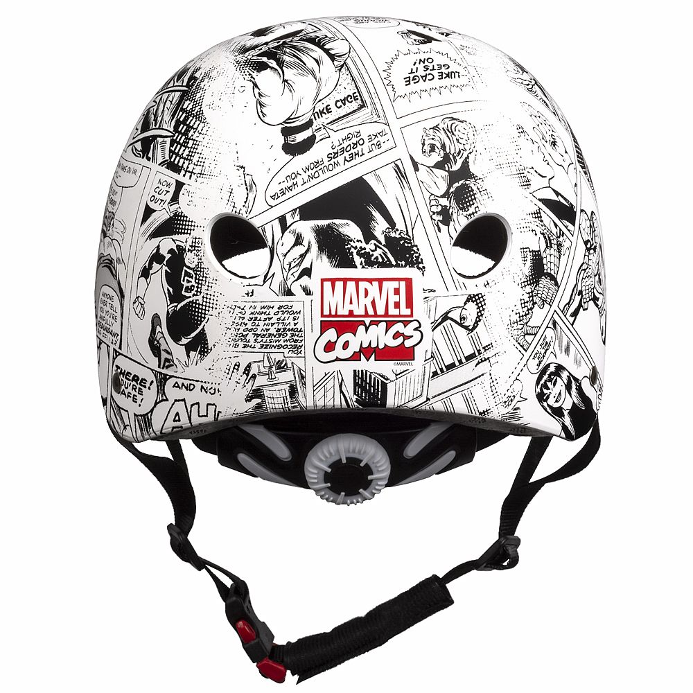 Bezpečná a štýlová helma pre všetkých malých fanúšikov superhrdinov Avengers. Atraktívne biele prevedenie s motívmi Avengers Comics zaujme na prvý pohľad a zároveň poskytne potrebnú ochranu pri športových aktivitách.