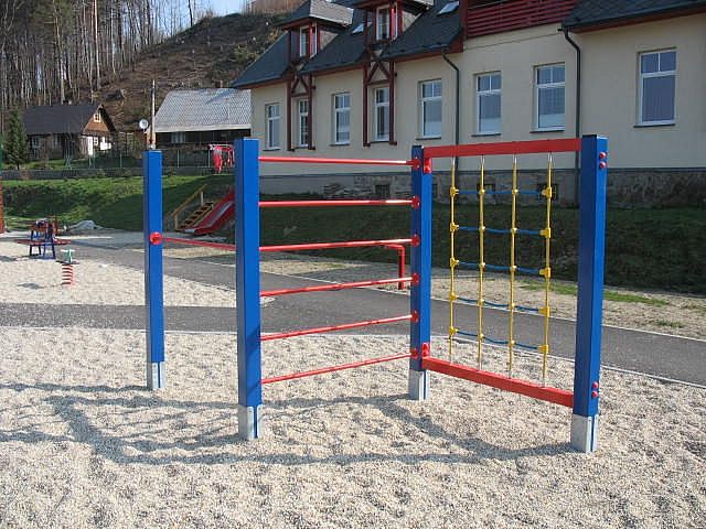 - Preliezačka sa skladá z lanového rebríka, rebriny, hrazdy.