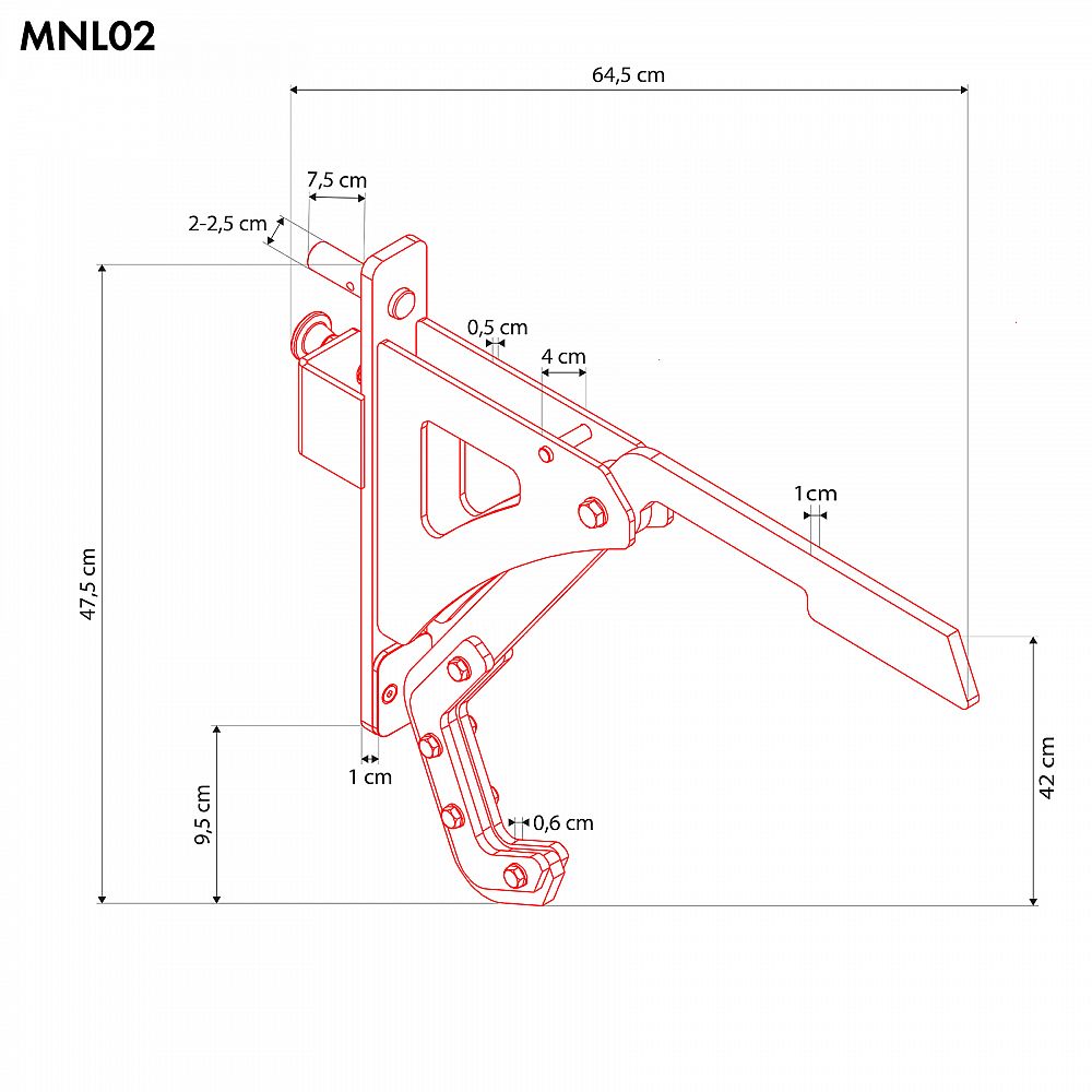 MNL02 sú inovatívne otočné ramená pre drepy typu Monolift, navrhnuté na zvýšenie komfortu počas silového tréningu. Vďaka svojej jedinečnej konštrukcii umožňujú úchyty zdvíhania a odkladania činky pri drepe bez nutnosti vykročenia, čím eliminujú riziko zranenia a umožňujú plné sústredenie na techniku.