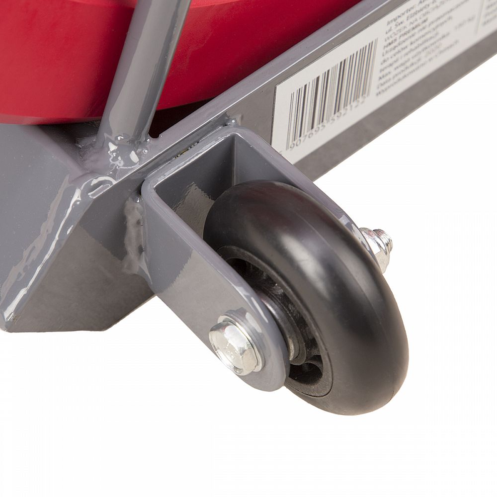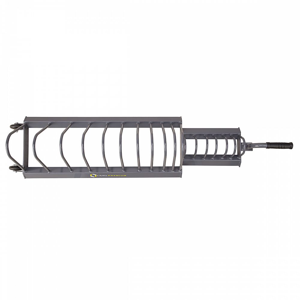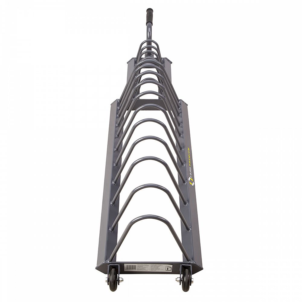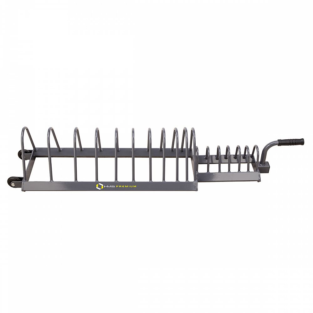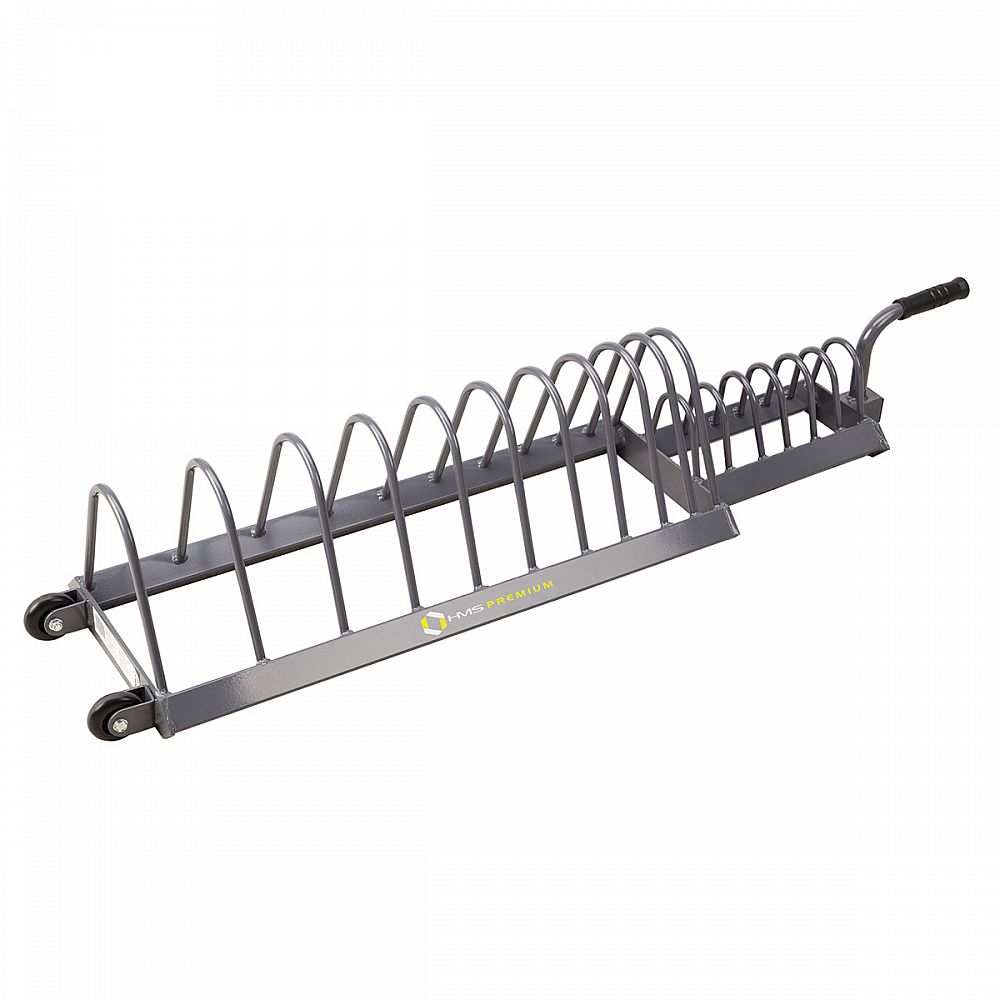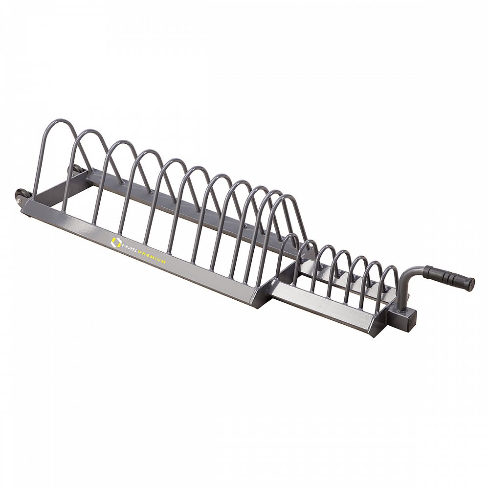 Stojan / vozík na závaží HMS Premium WPT01 je je vyroben z kvalitní oceli a můžete jej zatížit až 250-ti kilogramy. Konstrukce vozíku WPT01 disponuje 16-ti pozicemi pro odložení olympisjkých kotoučů, můžete do něj tedy vyskládat celou sadu závaží. Šíře jednotlivých pozic ve směru od transportních koleček jsou odstupňovány vždy po dvou a to konkrétně 2 x 11 cm, 2 x 9 cm, 2 x 7 cm, 2 x 5,5 cm, 2 x 3,5 cm, 2 x 4,5 cm, 2 x 4 cm a 2 x 3,5 cm. Transportní kolečka a pohodlné madlo umožňují snadné přesouvání celé sady závaží podle aktuálních potřeb.