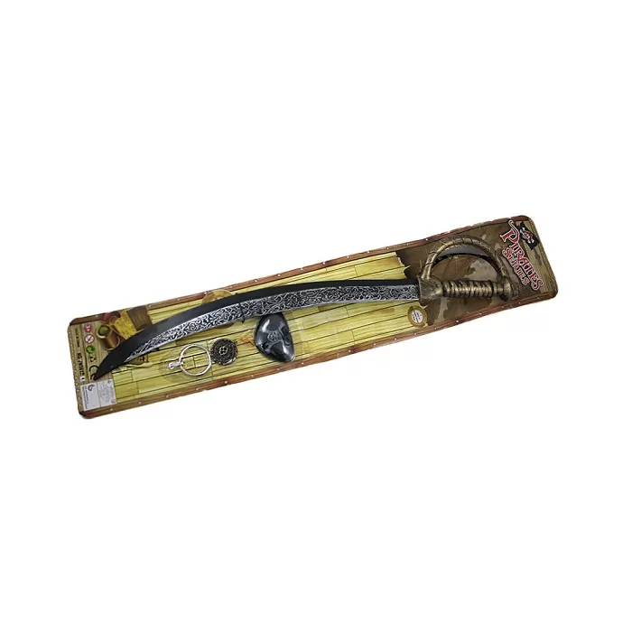 Pirátská sada je nepostradatelným doplňkem ke kostýmu piráta. Balení obsahuje: šavle - meč, klapka na oči, náhrdelník s motivem lebky a stříbrný kroužek do uchaMateriál: plast