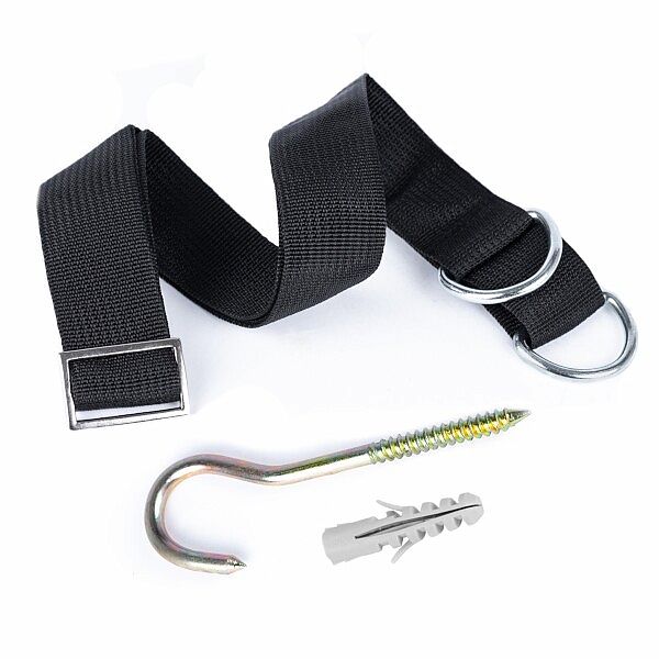 Súprava KIDS60.2 obsahuje popruh s prackou. Umožňuje zavesiť vrece v optimálnej výške vzhľadom na výšku dieťaťa. Správne zavesenie vreca je dôležité pre pohodlie, ale predovšetkým pre techniku úderov a prevenciu zranení. Popruh je nastaviteľný na dĺžku až 100 cm. V sade tiež nájdete stropný hák na zavesenie vreca.