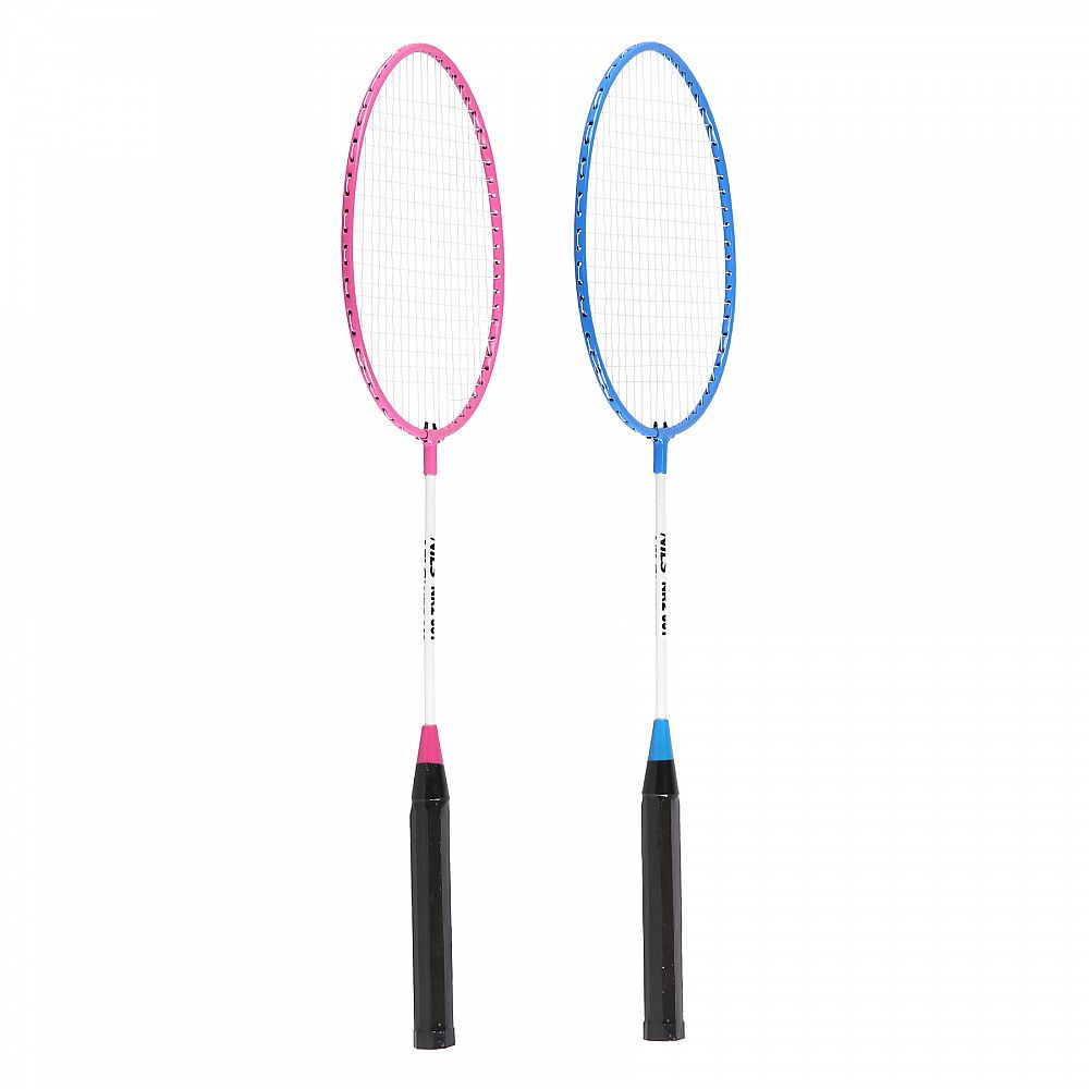 Popis: Sada 2 dadmintonových rakiet a nylonové letky NILS NRZ001 ružovo-modrá