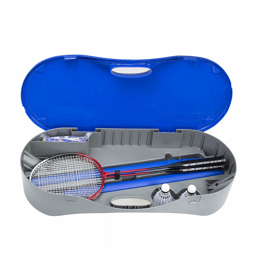 Zostava nastaviteľné siete na bedminton, tenis a 2 rakiet na badminton. Celá sada sa nachádza v plastovom kufríku, ktorý slúži taktiež ako základňa. Sieť má 2 veľkosti nastavenia a to priamo na jednotlivé športy. Najvyššie nastavenie pre bedminton má 155 cm a na tenis je síťve výške 96 cm. K nastavenie siete nie je potrebné žiadne náradie, stačí iba zacvaknúť požadovanú veľkosť.