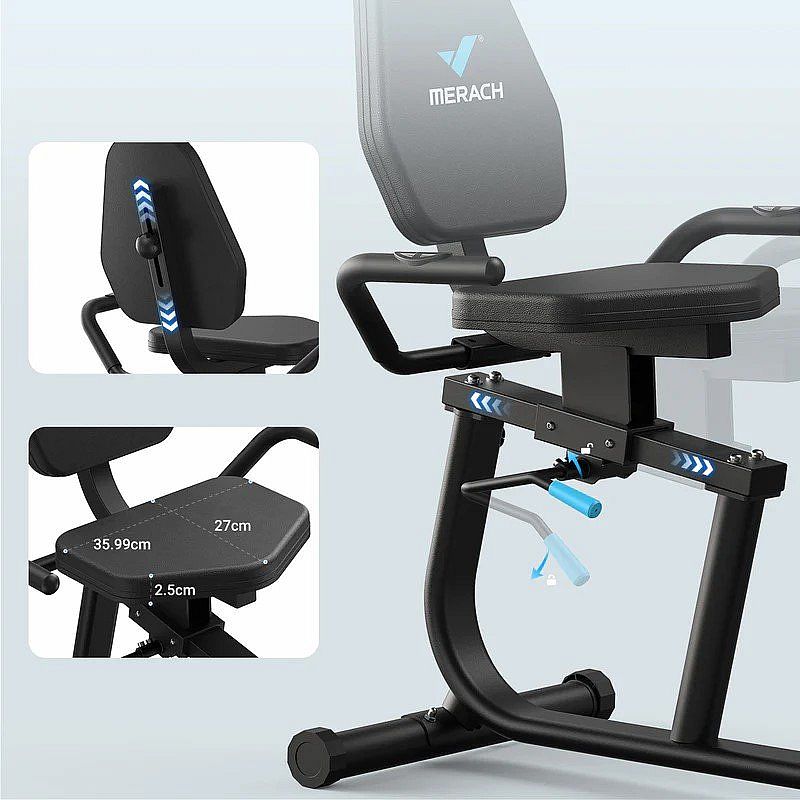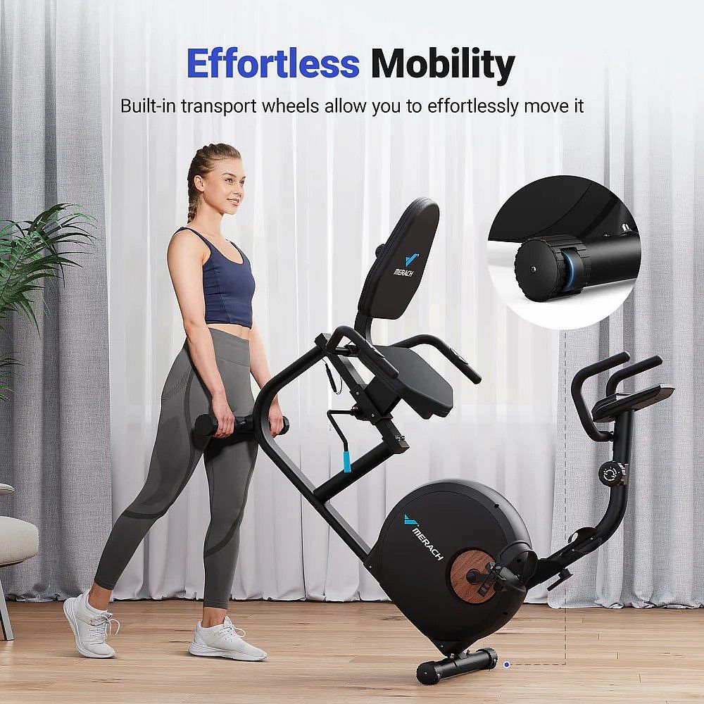 Lehátkový rotoped MERACH S23B1 ponúka efektívny tréning celého tela s odporovými pásmi, nastaviteľným sedadlom a 8 úrovňami odporu. Jednoduchá montáž a ľahké premiestnenie po miestnosti vďaka transportným kolieskam.