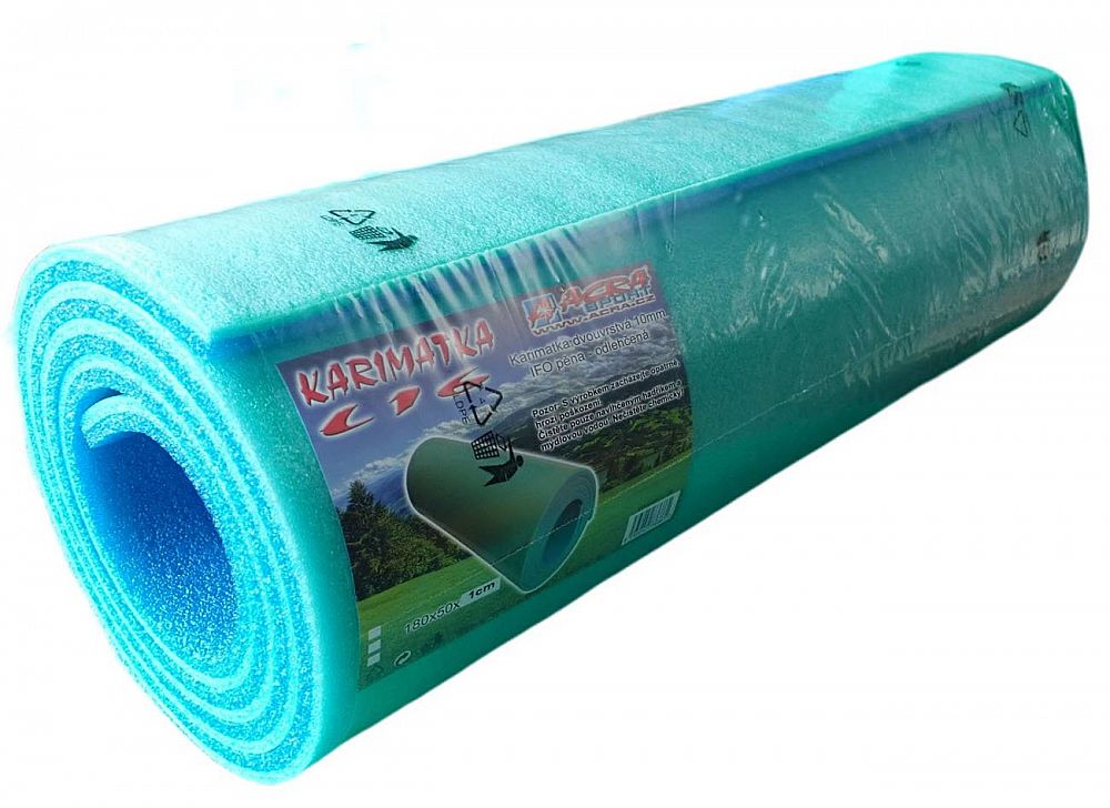 Karimatka dvojvrstvová, hrúbka 10 mm, rozmer 180 x 50 cm. IFO pena - odľahčená. Karimatka je vhodná na turistiku a kempovanie. K dispozícii vo farbe zeleno-modrej.