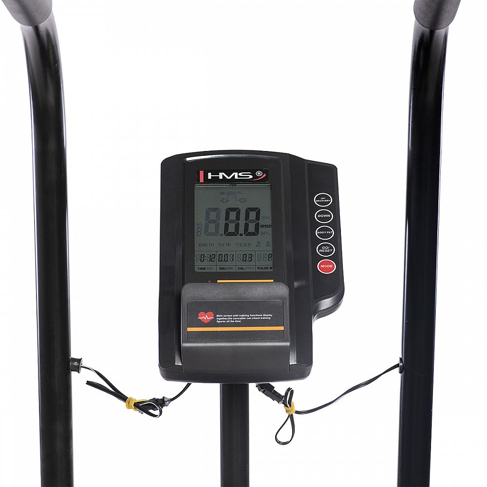 AIR BIKE MP 6548 HMS je najkomplexnejší stoj určený na kardio cvičenia. Model používané takmer vo všetkých crossfitových telocvičniach, rehabilitačných zariadeniach a profesionálnych fitcentrách teraz aj pre domáce prostredie. Či už ste začiatočník alebo pretekárske športovec - tento model je vhodný ako pre vytrvalostné, tak i crossové tréningy. MP 6548 je vybavený dvoma rukoväťami, ktoré pripomínajú tréning na crossovom trenažéri. Tento inovatívny AIR BIKE tak umožňuje tréning celého tela na najvyššej úrovni. Precvičuje sa nielen aeróbne a anaeróbne oblasť, ale sa posilňujú aj svaly. Intenzívne tréningové jednotky Vás budú nielen že baviť, ale aj extrémne podporí výmenu telesných látok, čím vzrastie aj počet spálených kalórií. Poskytuje vysoko intenzívne tréningy celého tela pri veľmi plynulom priebehu pohybu, ktorý nezaťažuje kĺby. Model disponuje LCD displejom ukazujúci nielen základné parametre ako je čas a vzdialenosť, ale vďaka senzorom, ukazuje aj pulz. AIR BIKE je takisto vyrobený z najkvalitnejších materiálov a aj vďaka tomu je veľmi stabilný.