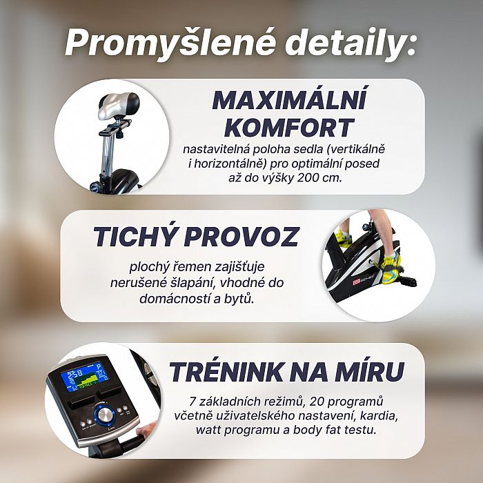 - 7“ LED obrazovka zobrazuje všetky potrebné údaje o cvičení.
