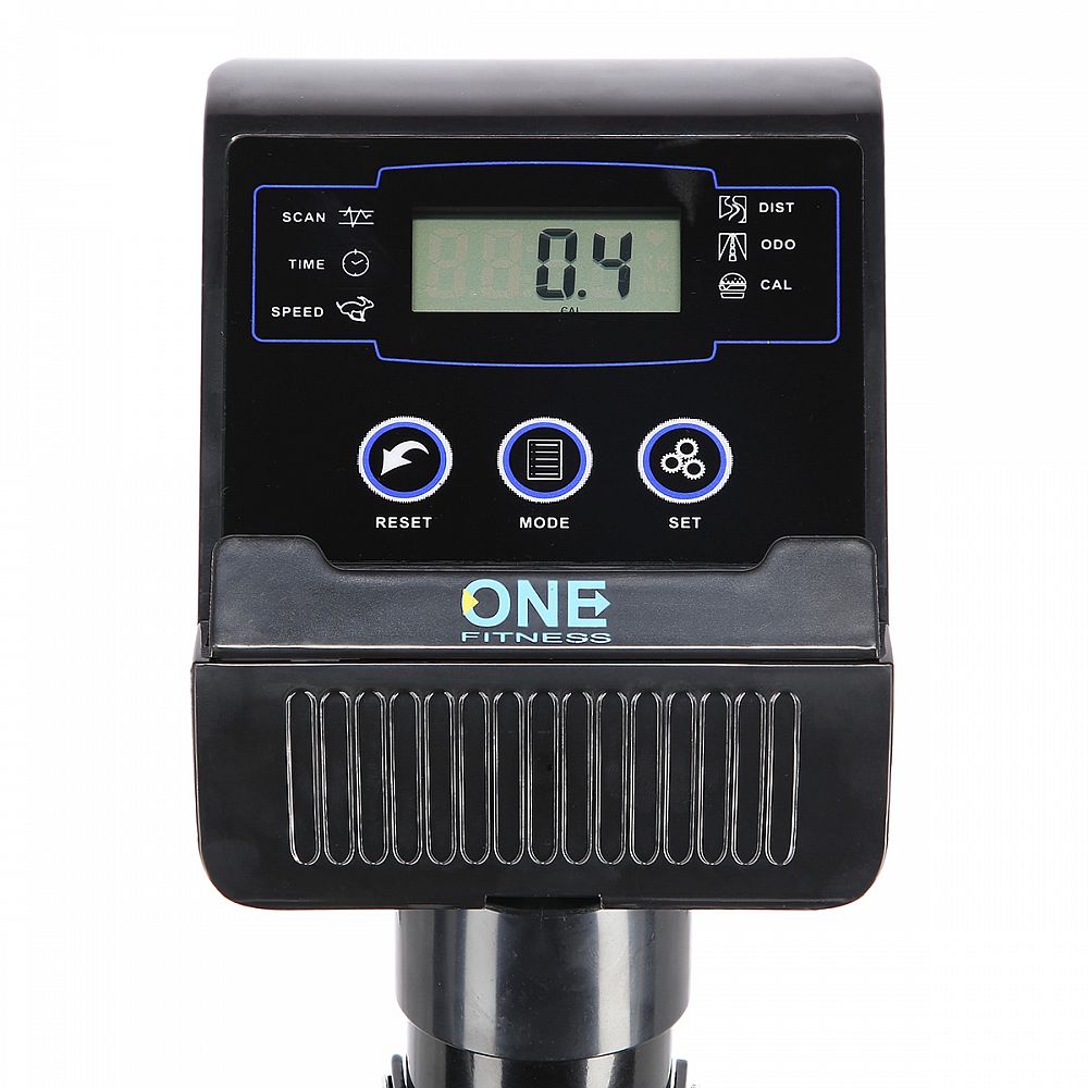 Mechanický rotoped ONE Fitness RW3011, ako už názov napovedá, má mechanický systém brzdenia bez záťažového kolesa. Prehľadný počítač zobrazuje všetky údaje potrebné na prehľadný tréning - čas tréningu, rýchlosť, vzdialenosť, celková vzdialenosť a spálené kalórie. Konzola je vybavená držiakom mobilného zariadenia, do ktorého umiestnite tablet alebo telefón a počas tréningu môžete sledovať napríklad obľúbený seriál.