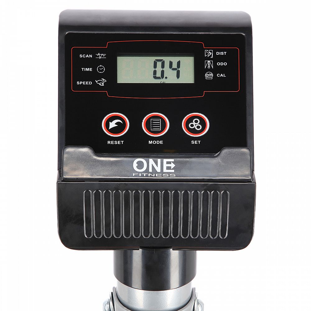 Mechanický rotoped ONE Fitness RW3011, ako už názov napovedá, má mechanický systém brzdenia bez záťažového kolesa. Prehľadný počítač zobrazuje všetky údaje potrebné pre prehľadný tréning - čas tréningu, rýchlosť, vzdialenosť, celková vzdialenosť a spálené kalórie. Konzola je vybavená držiakom mobilného zariadenia, do ktorého umiestnite tabliet alebo telefón a počas tréningu môžete sledovať napríklad obľúbený seriál.