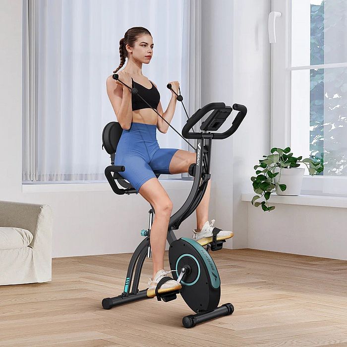 Tento inovatívny skladací dizajn ponúka vzpriamený a naklonený režim jazdy, rovnako ako tréning paží a chrbta.