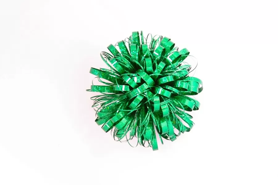 Ozdobná, bohatá, papierová rozeta, ktorú upevníme ako ozdobu na darčeky vo farbe zelenej.
