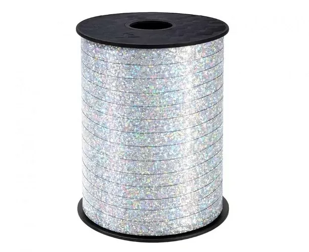 Popis: Strieborná holografická viazacia stuha – 5 mm × 458 m