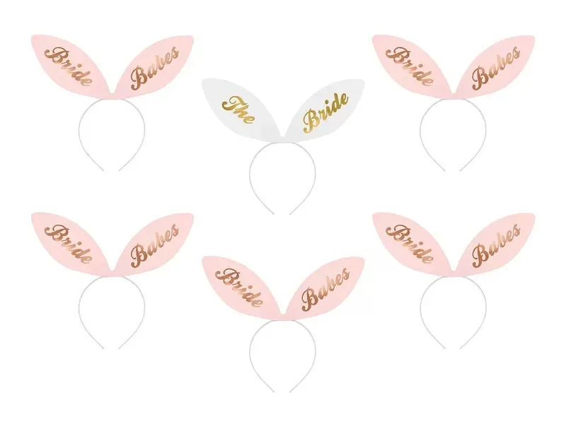 Čelenky v tvare králičích ušiek pre nevestu a jej tím. Na rozlúčke so slobodou s týmito čelenkami zažiarite. Pre nevestu ušká biela s nápisom THE BRIDE, pre tím nevesty ušká ružová s nápisom BRIDE BABES.
