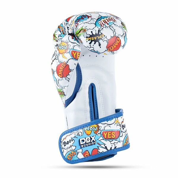 Bezpečnosť, pohodlie a odolnosť - rukavice DBX BUSHIDO ARB-Kids boli vyvinuté špeciálne pre najmladších adeptov bojových športov. Vďaka farebnému prevedeniu v komiksovom štýle trénujú deti s ešte väčšou radosťou a profesionálna konštrukcia im poskytuje maximálnu ochranu. Vďaka palcu spojenému s rukavicou, širokej manžete na suchý zips na stabilizáciu zápästia a ručné šitie sú ideálnou voľbou pre mladých bojovníkov, ktorí chcú rozvíjať svoje zručnosti v boxe, kickboxe alebo Muay Thai.