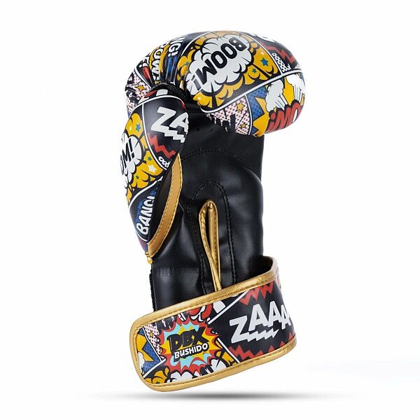 Bezpečnosť, pohodlie a odolnosť - rukavice DBX BUSHIDO ARB-Kids boli vyvinuté špeciálne pre najmladších adeptov bojových športov. Vďaka farebnému prevedeniu v komiksovom štýle trénujú deti s ešte väčšou radosťou a profesionálna konštrukcia im poskytuje maximálnu ochranu. Vďaka palcu spojenému s rukavicou, širokej manžete na suchý zips na stabilizáciu zápästia a ručné šitie sú ideálnou voľbou pre mladých bojovníkov, ktorí chcú rozvíjať svoje zručnosti v boxe, kickboxe alebo Muay Thai.
