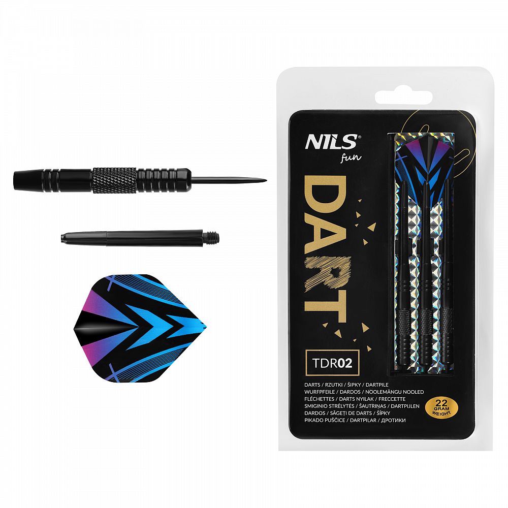 TDR02 NILS Fun je sada 3 šípok určených pre hru v šípky, ktorá perfektne poslúži pri domácich turnajoch. Spája klasický štýl, kvalitné materiály a dobre vyváženú konštrukciu, čo zaisťuje presný a stabilný let. Každá šípka je vybavená kovovým hrotom typu steel tip, určeným pre štandardné sisalové terče a ďalšie terče kompatibilné s kovovými hrotmi.
