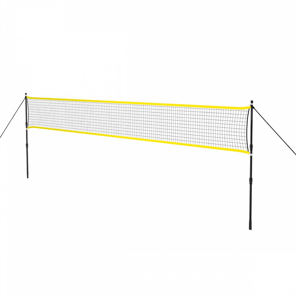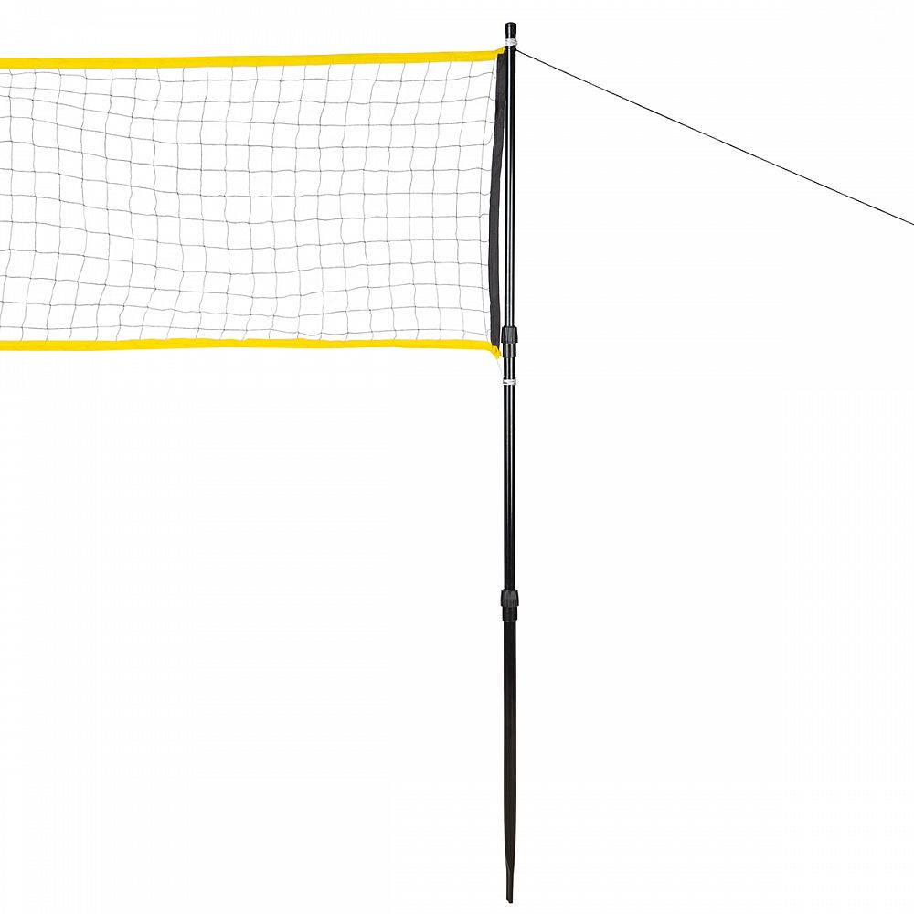 Oceľové, teleskopické stĺpiky sa skladajú z 3 tyčí - vnútorná výsuvná tyč so sebou skrýva 2 otvory na pretiahnutie a upevnenie siete, prostredná tyč slúži na nastavenie ideálnej výšky siete a posledná je na konci zužená, aby išla ľahko zapichnúť napríklad do trávnika. Nastavenie dĺžky stĺpikov sa vykonáva povolením objímok a vysunutím jednotlivých tyčí. Aretácia sa vykonáva opätovným dotiahnutím objímok. Sieť je možné výškovo nastaviť v rozmedzí od 1,2 do 1,6 metra a jej šírka 6,3 metra umožňuje hranie 2 zápasov zároveň.