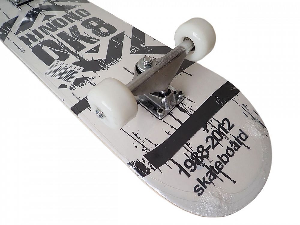Skateboard závodný s protišmykom na vrchnej strane dosky, spevnený podvozok odolnejší voči záťaži - 5" = 12,8 cm šírka, PU kolieska 50 x 36 mm, ložiská ABEC - 1, rozmery dosky sú 31 x 8 inch (palcov) = 78 x 20 cm, nos nos. by dôjsť k ulomeniu podvozku alebo k prasknutiu dosky. Protismykový poťah je po celej dĺžke skateboardu.