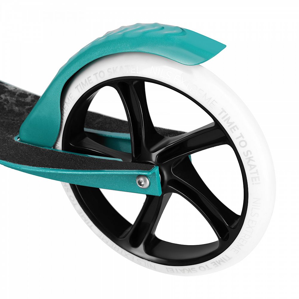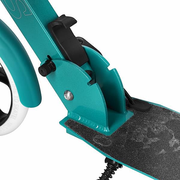 Pohodlnú jazdu zaisťujú veľké 20centimetrové kolesá z polyuretánu (PU), ktoré tlmia drobné nerovnosti povrchu a zaisťujú stabilitu aj pri vyšších rýchlostiach. Ložiská ABEC 9 umožňujú plynulé a tiché otáčanie kolies, čo výrazne zvyšuje jazdný komfort. Tlmič na prednom kolese napomáha pokojnejšej jazde a znižuje vibrácie prenášané do riadidiel.