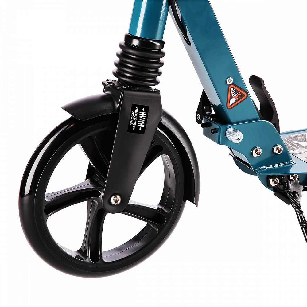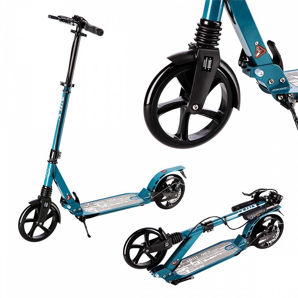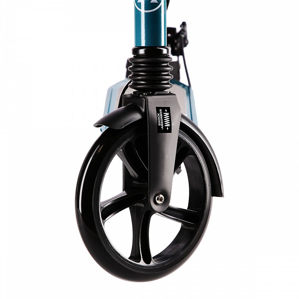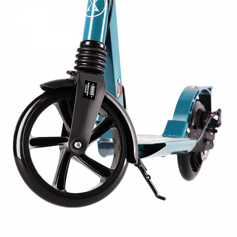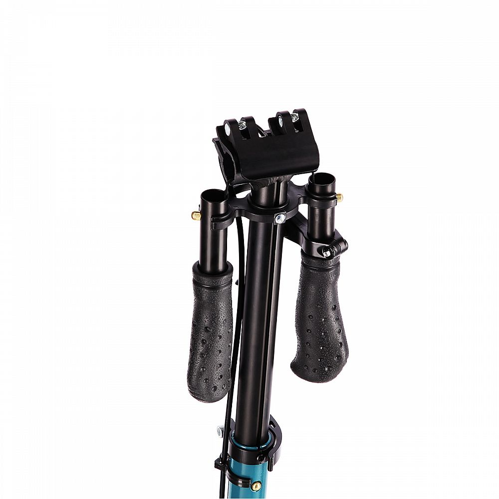 Riadidlá sú výškovo nastaviteľné s troch polôh (78 - 85 - 92 cm). Samotné gripy (madlá) sú gumové pre bezpečný úchop. Riadidlá je možné pre úsporu miesta vysunúť a sklopiť, správnu polohu riadidiel zaisťuje istiaci čap a široká svorka. Veľké kolesá s priemerom 200 milimetrov a ložiská triedy ABEC 11 zaisťujú veľmi rýchlu a plynulú jazdu. Kolesá sú bezdušové, polyuretánové.
