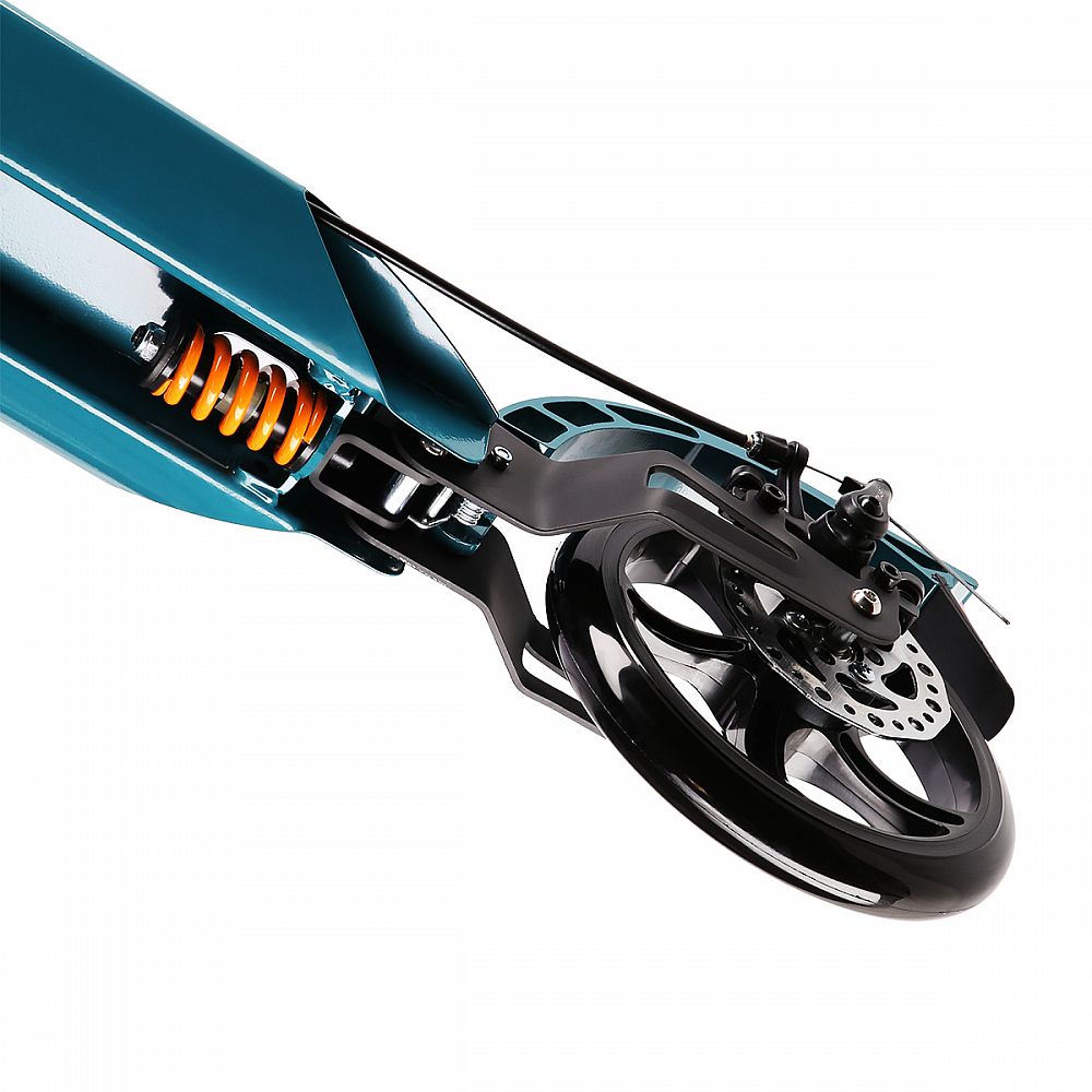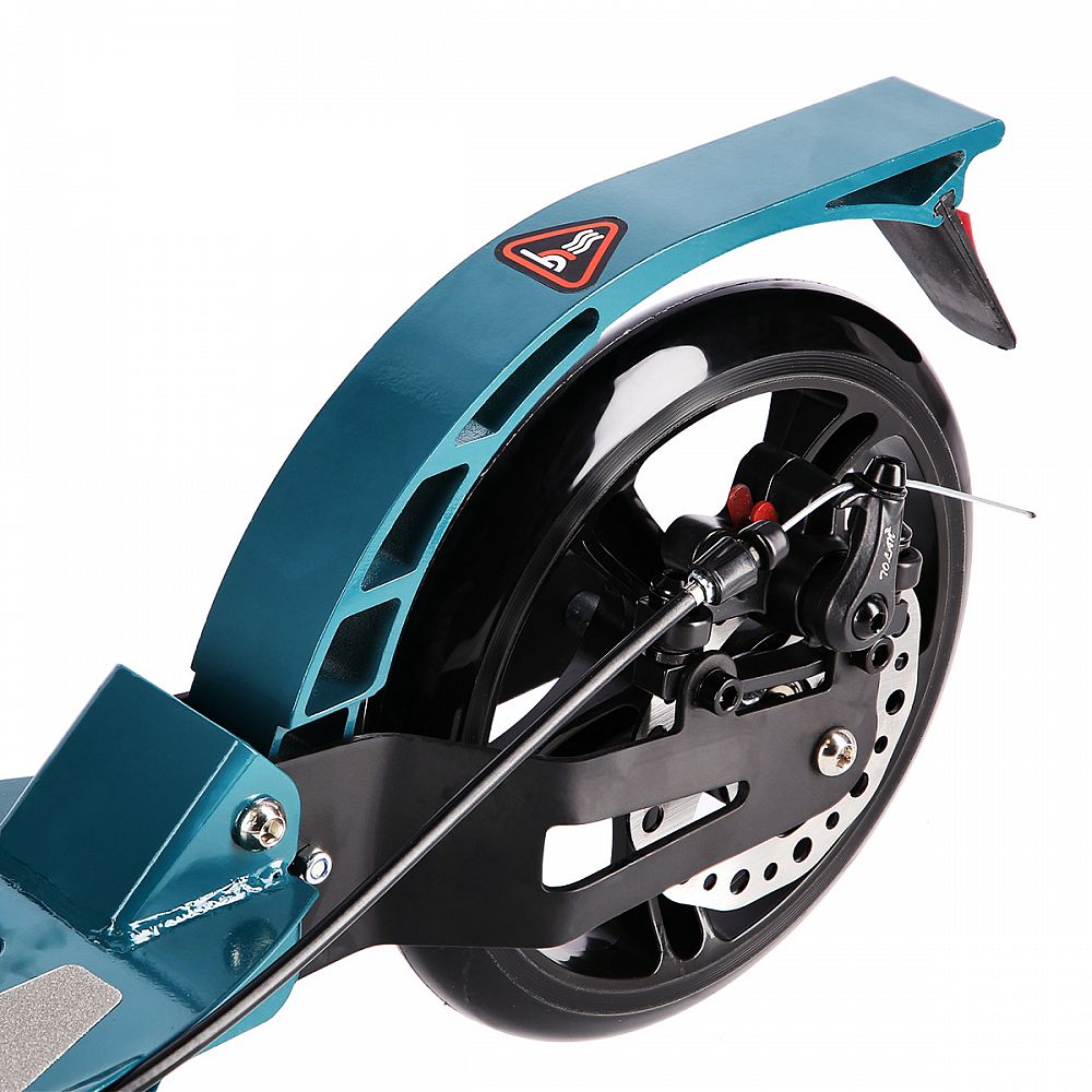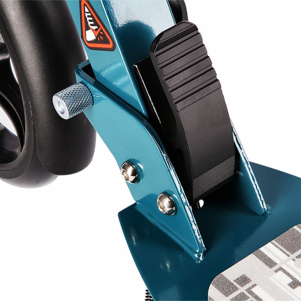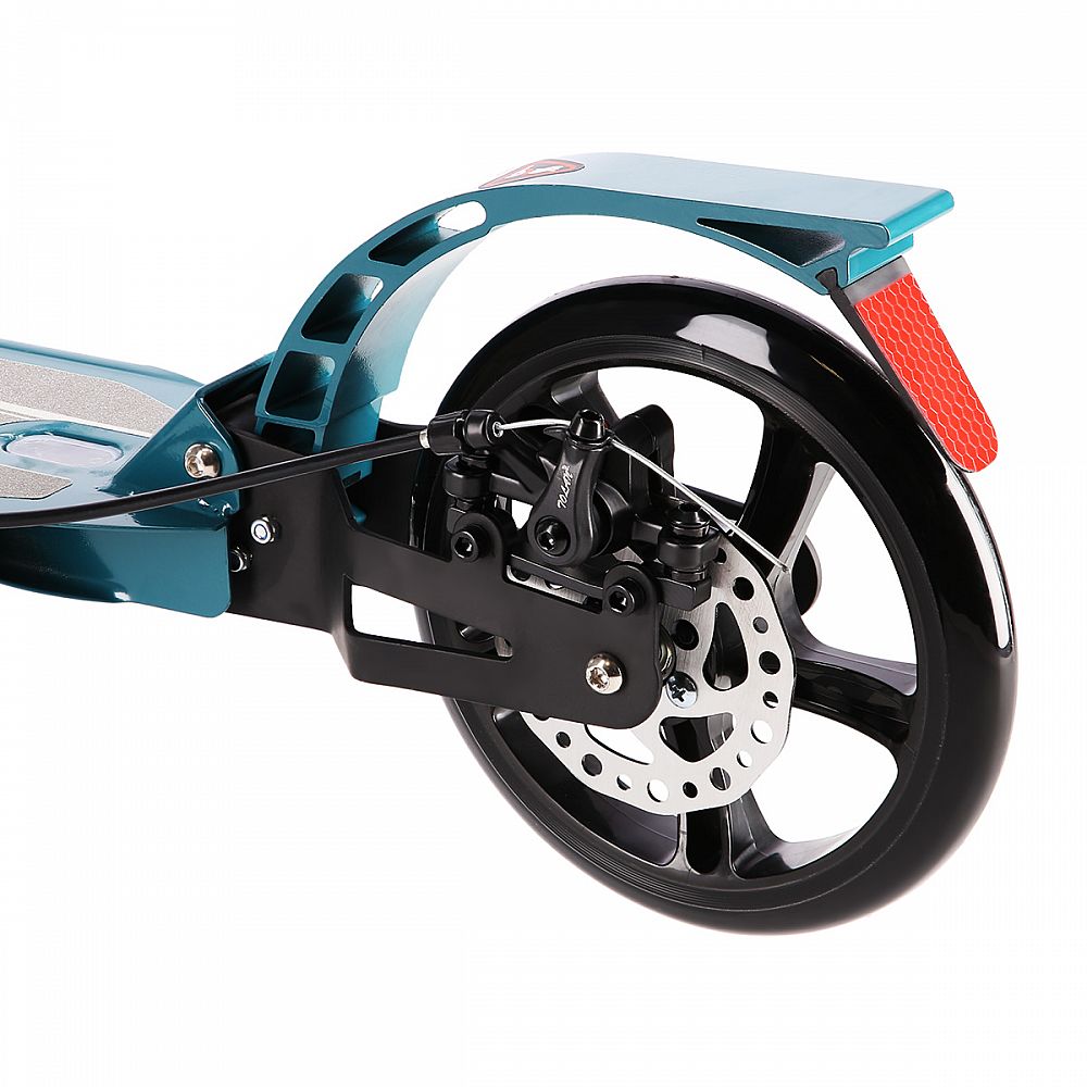 Kolobežka má na zadnom kolese 2 brzdy - kotúčovú a nášľapnú. Kotúčová brzda poskytuje oveľa väčší brzdný účinok ako klasická nášľapná brzda. Vďaka dávkovaniu pomocou páčky na riadidlách je ovládanie oveľa intuitívnejšie ako v prípade nášľapnej brzdy a jej použitie je oveľa rýchlejšie. A čo je najdôležitejšie, použitie takéhoto riešenia pozitívne ovplyvňuje bezpečnosť jazdy aj na mokrej vozovke.