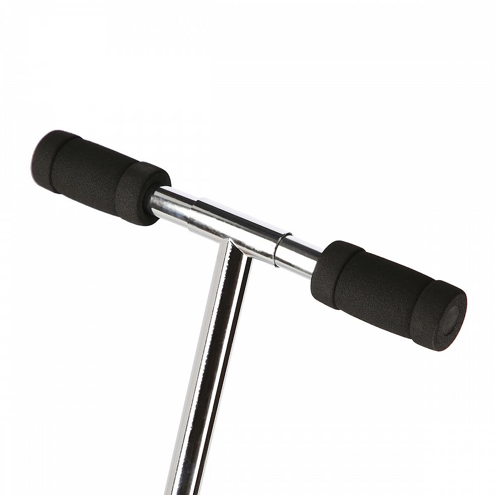 Zadný blatník slúži ako nášľapná brzda. Sklopné riadidlá sú opatrené penovými rukoväťami, ktoré zaisťujú pevný a pohodlný úchop. Riadidlá sú výškovo nastaviteľné do 3 úrovní. Veľké kolesá sú osadené ložiskami ABEC 7 a polyuretánovou pneumatikou s priemerom 200 milimetrov. Táto kombinácia zaisťuje rýchlu, plynulú a bezpečnú jazdu. Sklopný stojan umožňuje postavenie kolobežky, takže ju nie je potrebné pokladať.