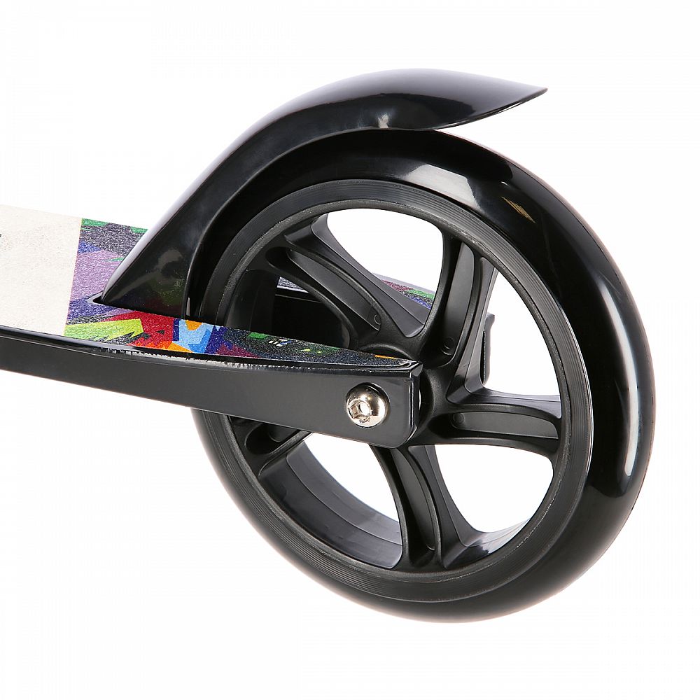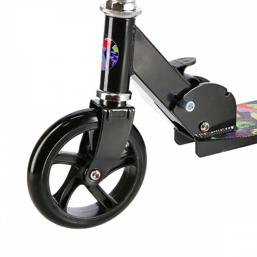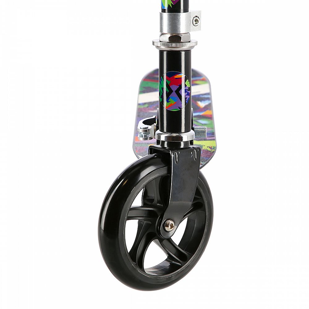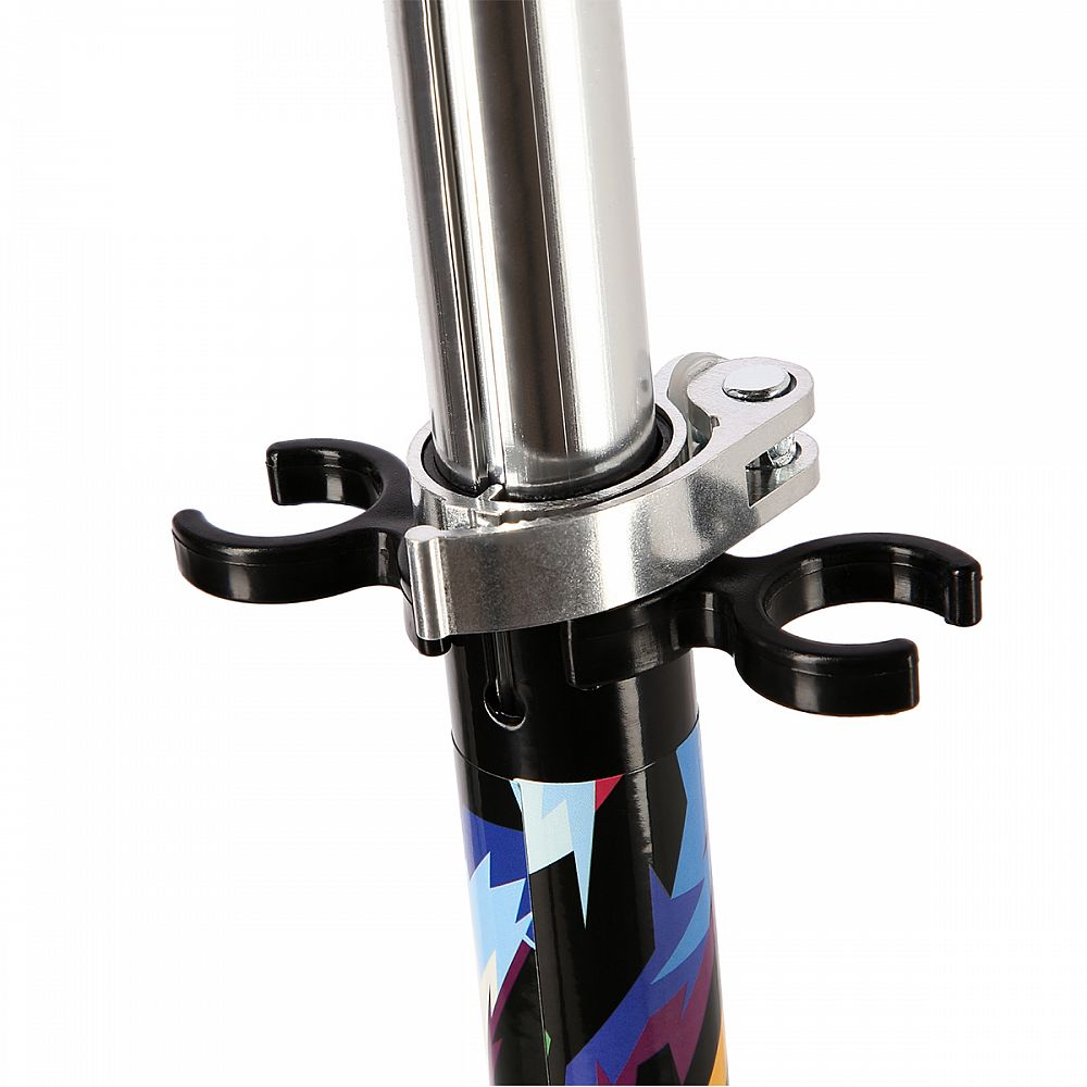 Riadidlá sú výškovo nastaviteľné do štyroch polôh (64,5 - 76 - 81,5 - 86 cm). Samotné gripy (madlá) sú gumové pre bezpečný úchop. Riadidlá je možné pre úsporu miesta vysunúť a sklopiť, správnu polohu riadidiel zaisťuje istiaci čap. Kolesá s priemerom 145 milimetrov a ložiská triedy ABEC 5 zaisťujú pohodovú jazdu. Kolesá sú bezdušové, polyuretánové.