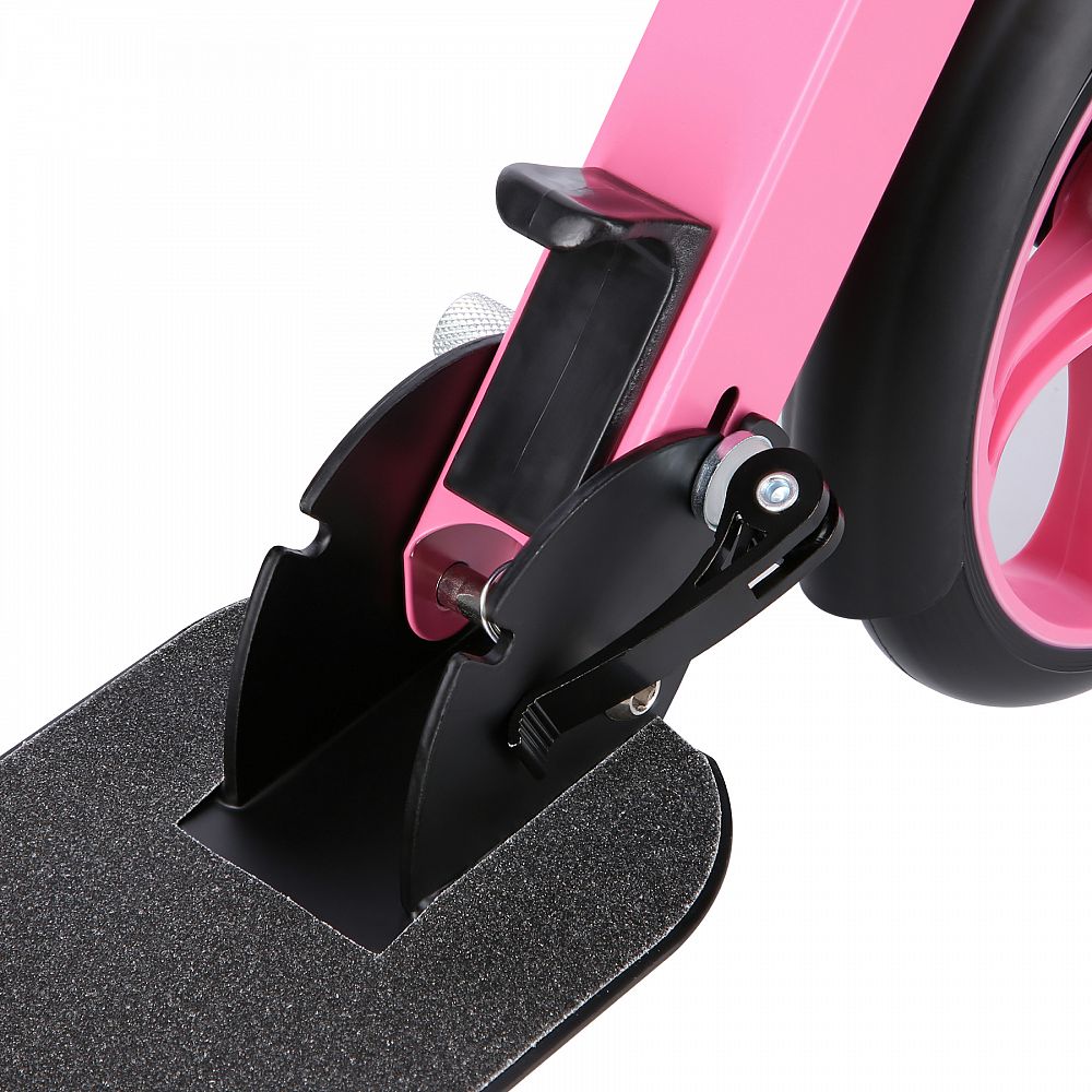 Zadný blatník slúži ako prítlačná brzda. Riadidlá je možné pri skladaní sklopiť a pre maximálne pohodlie počas jazdy sú opatrené gumovými rukoväťami. Výšku riadidiel je možné nastaviť do 3 úrovní v rozsahu od 75 do 95 cm.